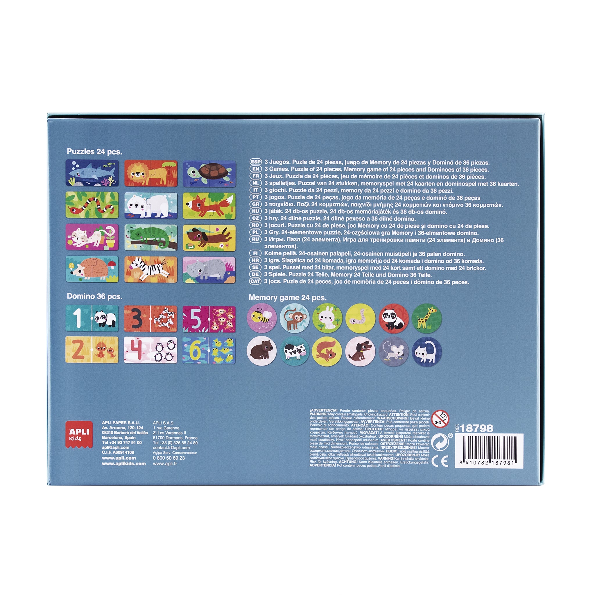 Ein Set mit 3 Apli Kids Spielen für Kinder ab 3 Jahren. Das Set enthält Puzzles, Dominosteine und Memory. Jedes Kleinkind wird etwas für sich selbst wählen. Einfache Spiele mit fröhlichen Grafiken werden das Kind interessieren und ermutigen sie zu spielen. Das Set ist perfekt als Geschenk für ein Vorschulkind.