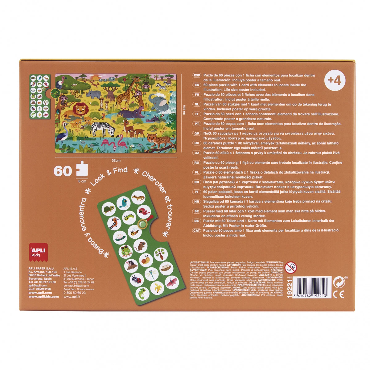 - Das Set enthält: 60 Teile, 1 Karte mit Teilen, die auf dem Puzzle zu finden sind, Poster
