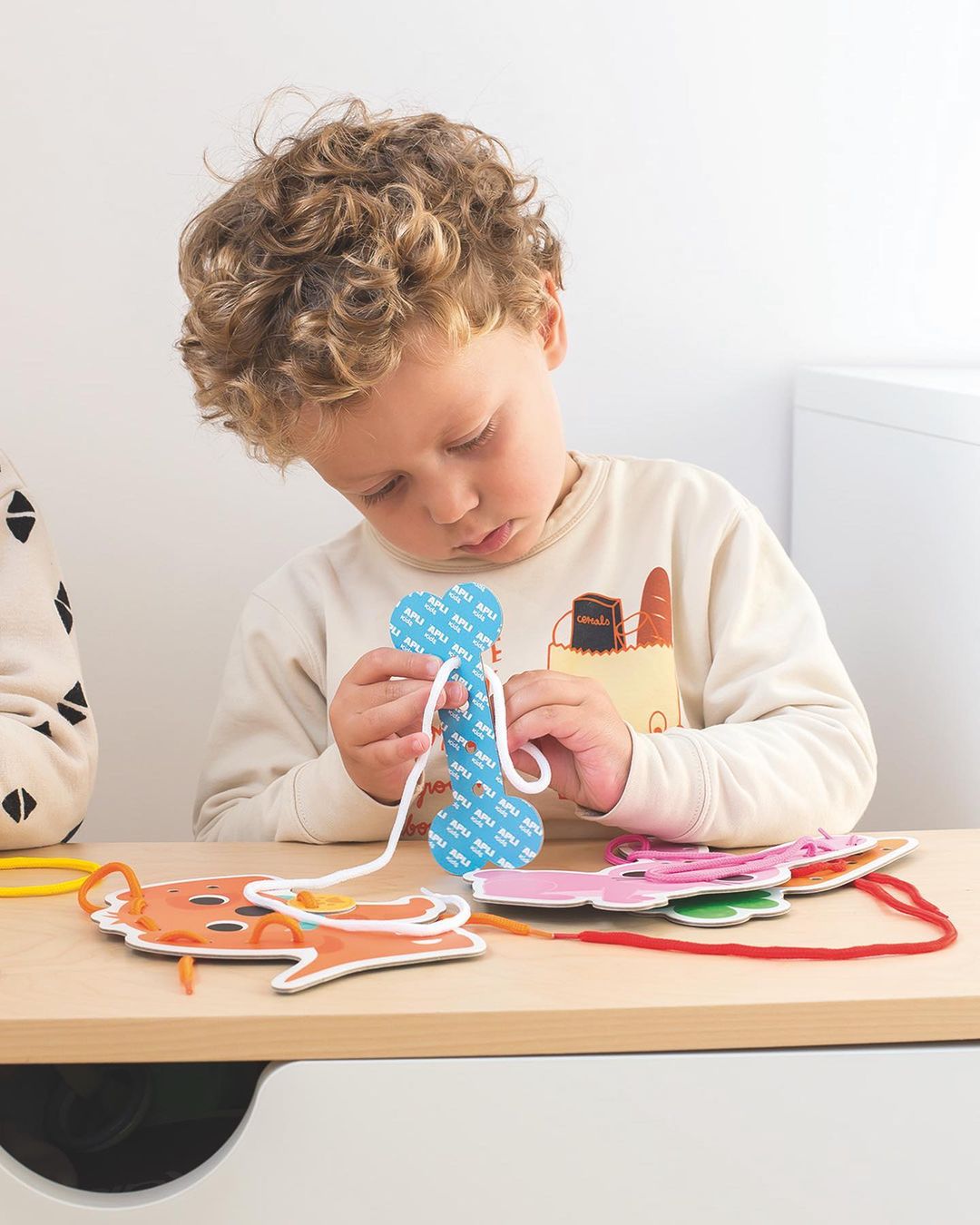 Mein erstes Apli Kids-Fädelspiel ist ideal für die Kleinsten – beim Spielen trainieren sie ihre Geschicklichkeit, Geduld und Konzentration. Die Aufgabe des Kindes besteht darin, bunte Schnüre zu fädeln und damit Bilder zu verzieren. Dank der großen Elemente zum Fädeln und der dicken Schnur ist das Spielzeug für Kinder ab 3 Jahren geeignet. Die bunten, fröhlichen Motive laden zum Spielen ein. Ideal als Geschenk.
