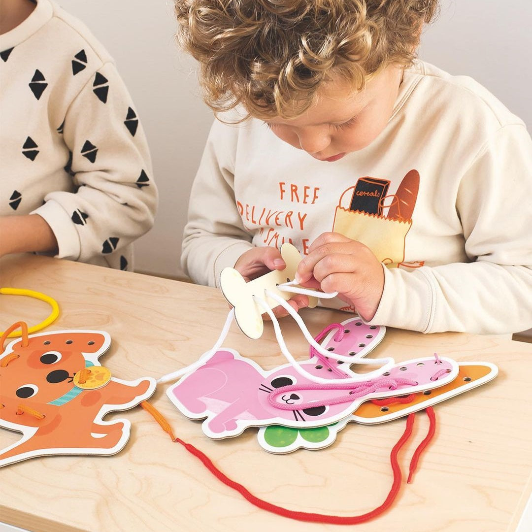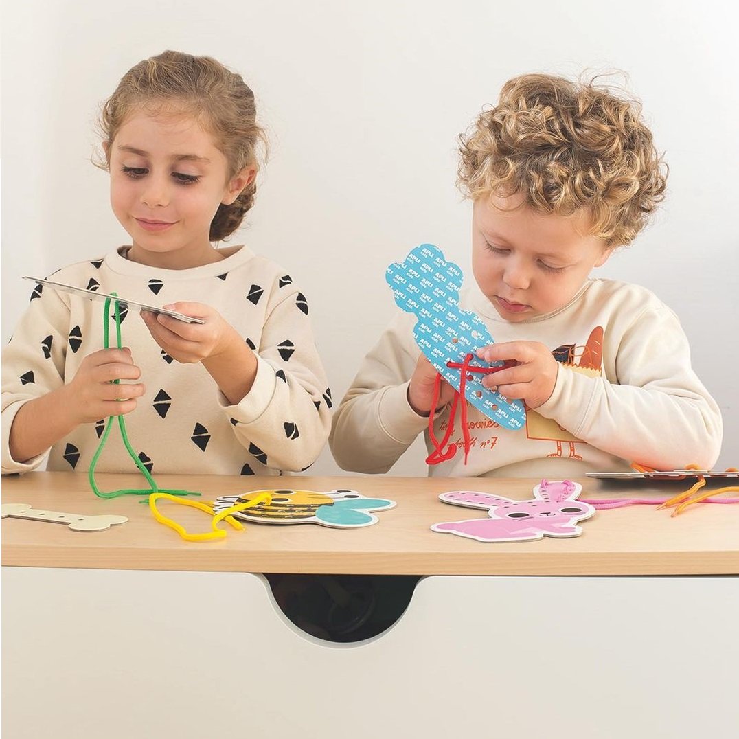 - im Set enthalten: 8 große Karten zum Fädeln, 6 bunte Schnüre (jeweils 60 cm lang)
