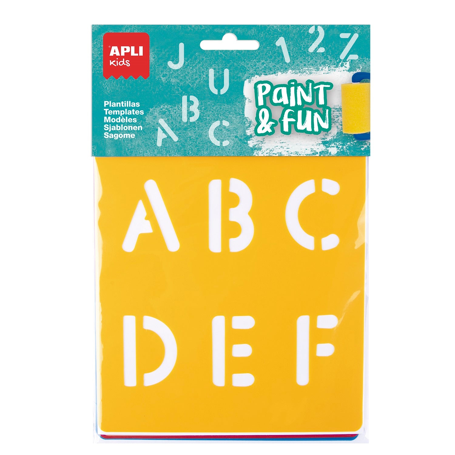 Das Set mit 6 Schablonen zum Spielen und Lernen von Apli Kids ist ein kreatives Werkzeug, das Kinder zum Entdecken von Buchstaben und Zahlen inspiriert. Die Schablonen aus der Serie Paint&Fun enthalten das vollständige Alphabet und die Zahlen von 0 bis 9.