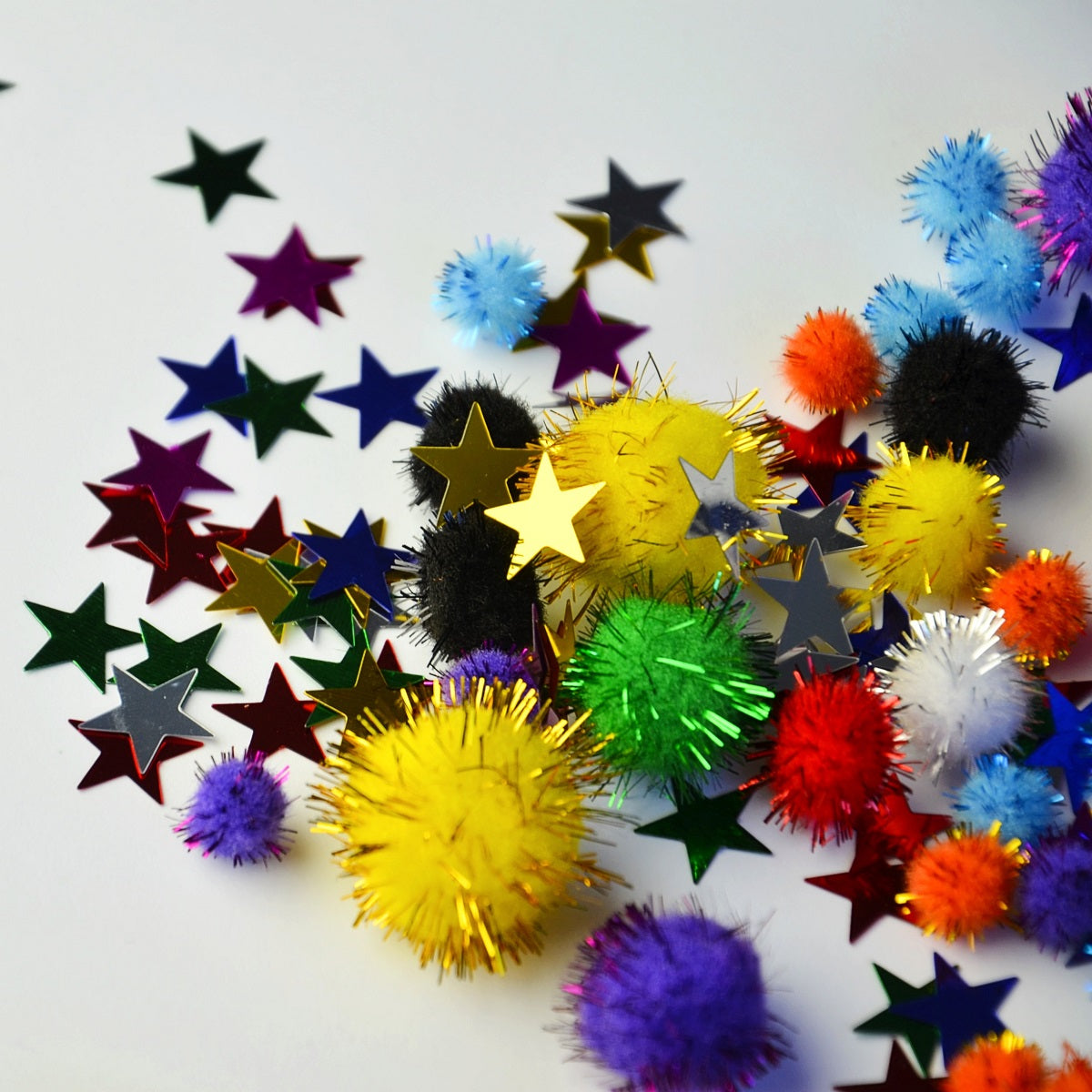 - im Set enthalten: 14 g Konfetti (Sternchen) mit einem Durchmesser von ca. 15 mm, 78 Pompons und 2 Glitzer (orange und grün)