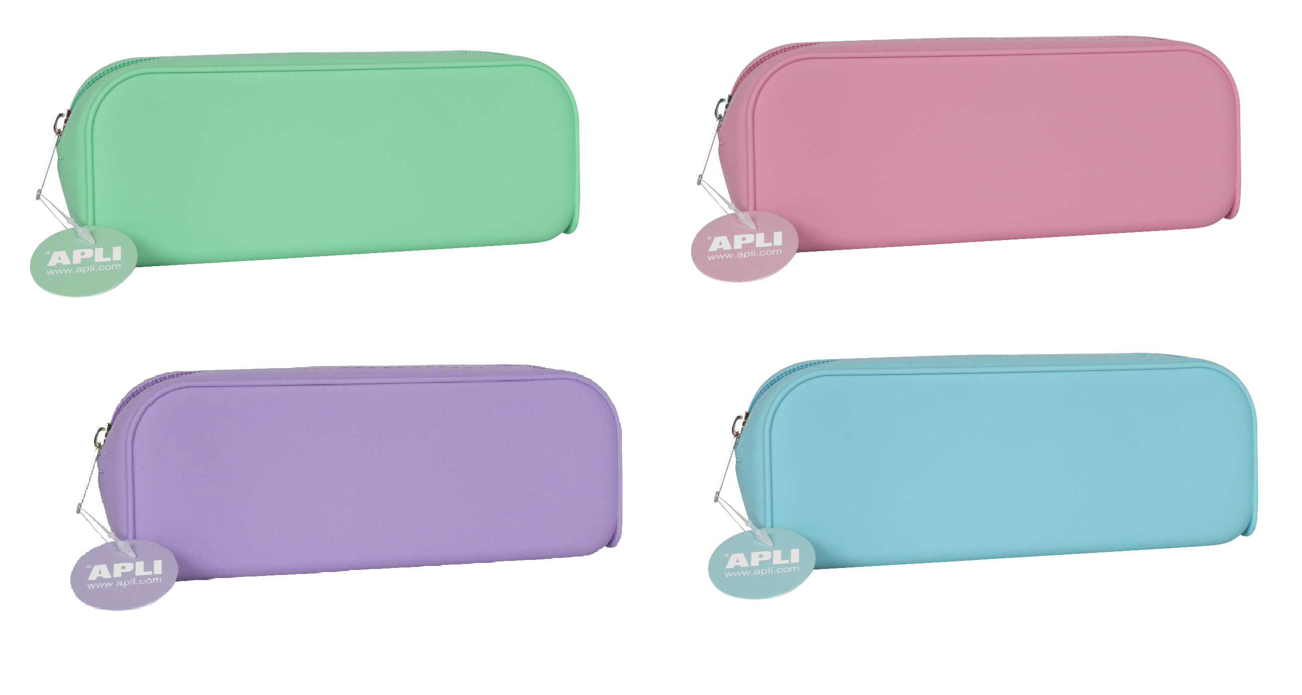 Erhältlich in vier Farben: türkis, rosa, grün und violett.