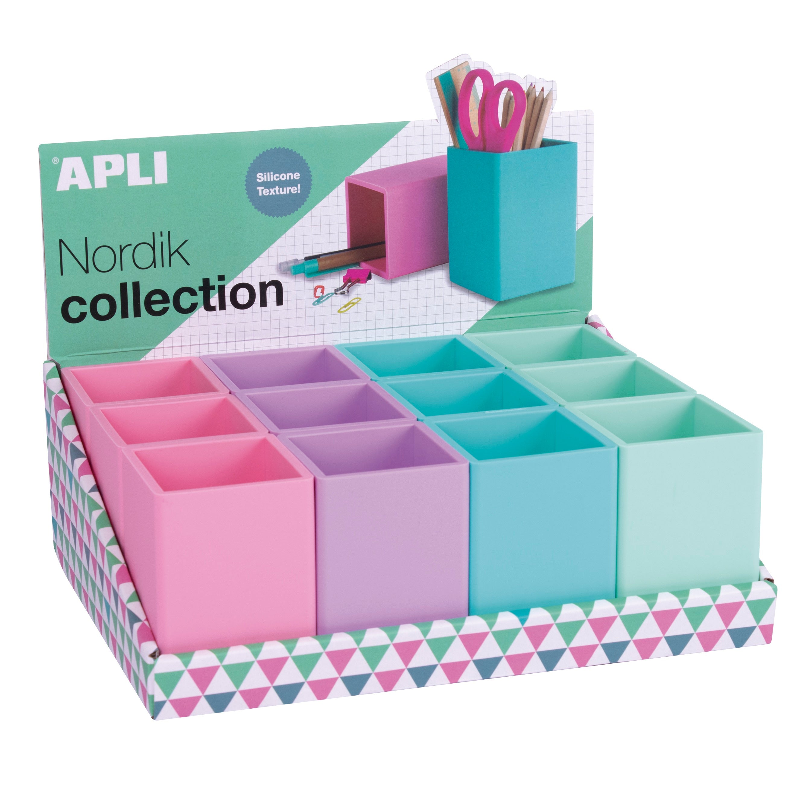 Silikon-Stiftehalter in Form eines Bechers für Bleistifte, Buntstifte, Büroklammern und alle Kleinigkeiten, mit dem Sie Unordnung auf Ihrem Schreibtisch vermeiden können. Der Behälter ist weich und angenehm anzufassen, und die skandinavischen Farben verleihen Ihrem Spiel- und Arbeitsbereich ein einzigartiges Aussehen.