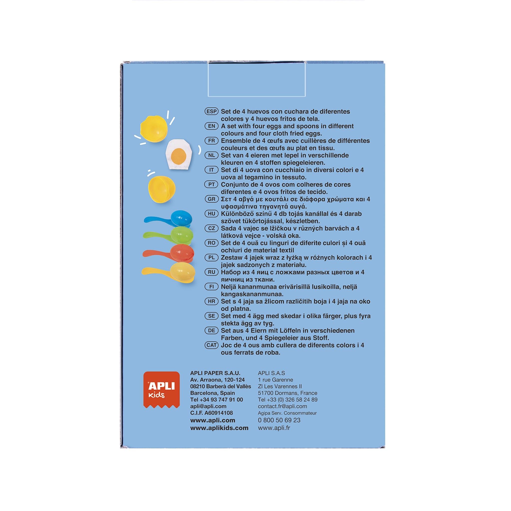Das Rennspiel von Apli Kids sorgt für viel Spaß und gute Laune bei Kindern und Erwachsenen. Das Set enthält bunte Plastikschalen und Spiegeleier aus weichem, angenehm anzufassendem Stoff. Das Ei wird auf einen Löffel gelegt und die Aufgabe der Spieler besteht darin, sich so zu bewegen, dass das Ei nicht herunterfällt und „zerbricht“. Wenn es einem Teilnehmer jedoch nicht gelingt, einen Unfall zu vermeiden und das Ei auf den Boden fällt, muss es schnell wieder zusammengesetzt und das Rennen fortgesetzt werden. Es gewinnt der Spieler, der als Erster die Ziellinie erreicht. Wenn alle Teilnehmer die Fähigkeit beherrschen, sich mit Eiern auf Löffeln fortzubewegen, kann man den Schwierigkeitsgrad erhöhen, indem man Hindernisparcours aufbaut. Dazu müssen lediglich Klötze, Kissen oder andere Gegenstände aufgestellt werden, die dem Spiel eine neue Dimension verleihen. Dies erfordert mehr Präzision und Geschicklichkeit, wodurch die Rennen noch spannender werden.