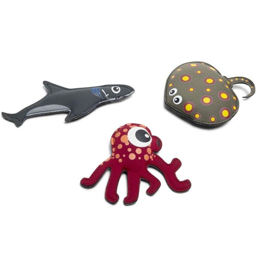 Ein Set mit drei Meerestieren: ein Hai, ein Rochen und ein Oktopus zum Tauchen, nach denen man beim Wasserbad im Pool, in der Badewanne oder auch beim Spielen am Strand gerne greift. Hergestellt aus strapazierfähigem Neoprenmaterial. Sie fördern das Tauchenlernen und sind ein ständiger Begleiter bei Ausflügen ins Wasser!