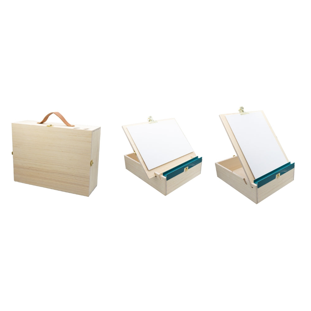 - Funktion: Der Koffer verwandelt sich in eine Staffelei mit einstellbarem Neigungswinkel.