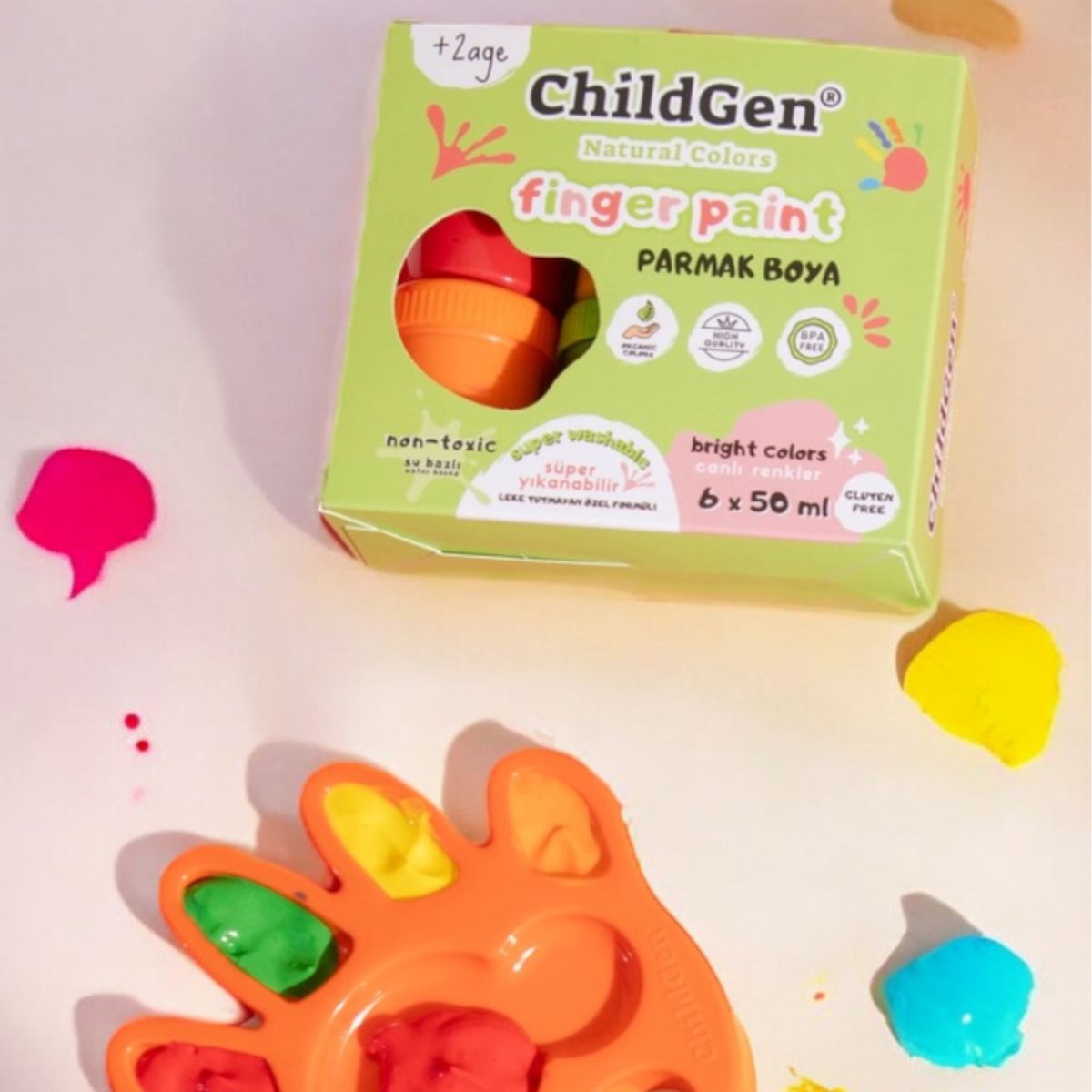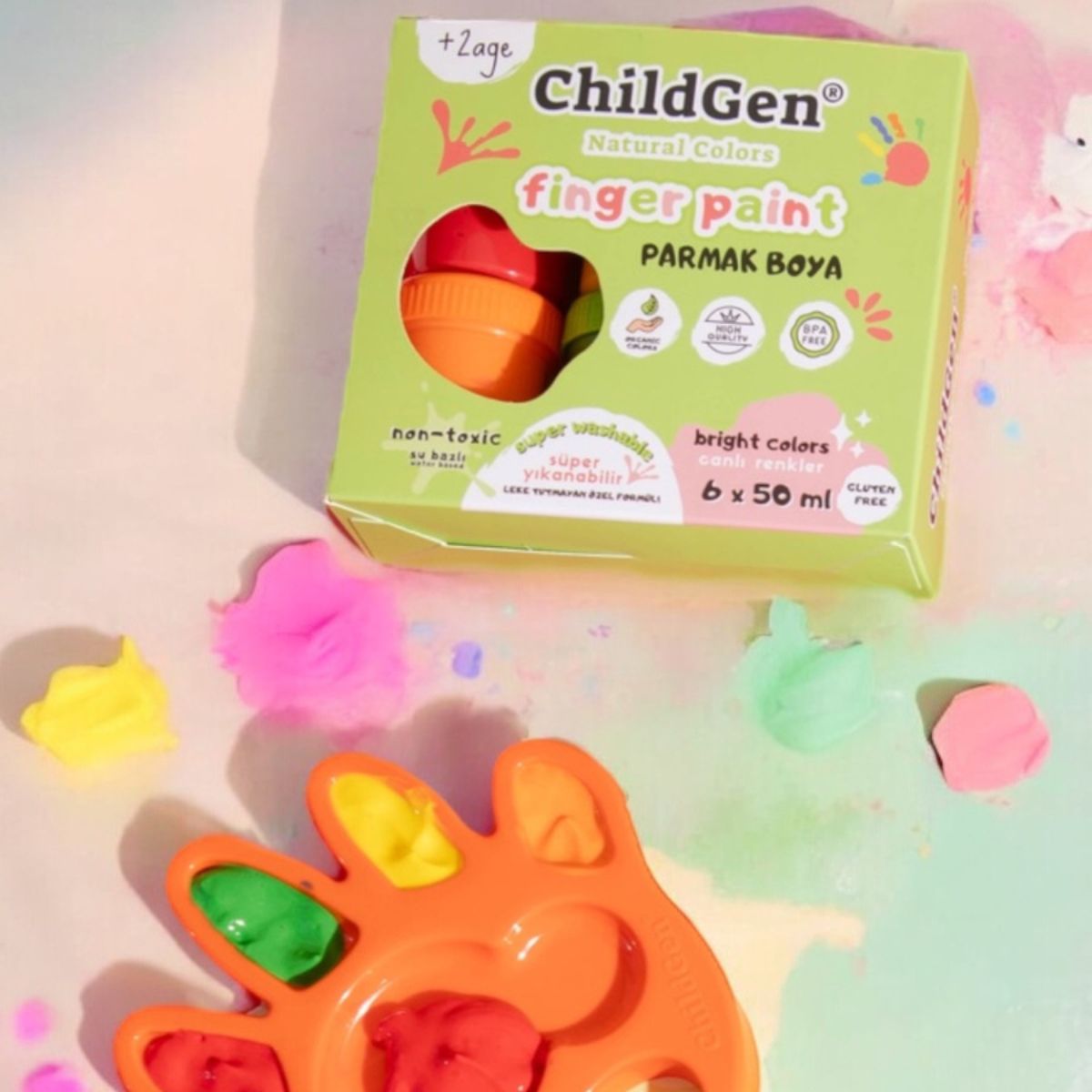 Eigenschaften ChildGen 6x50 ml leicht abwaschbare Fingerfarben: