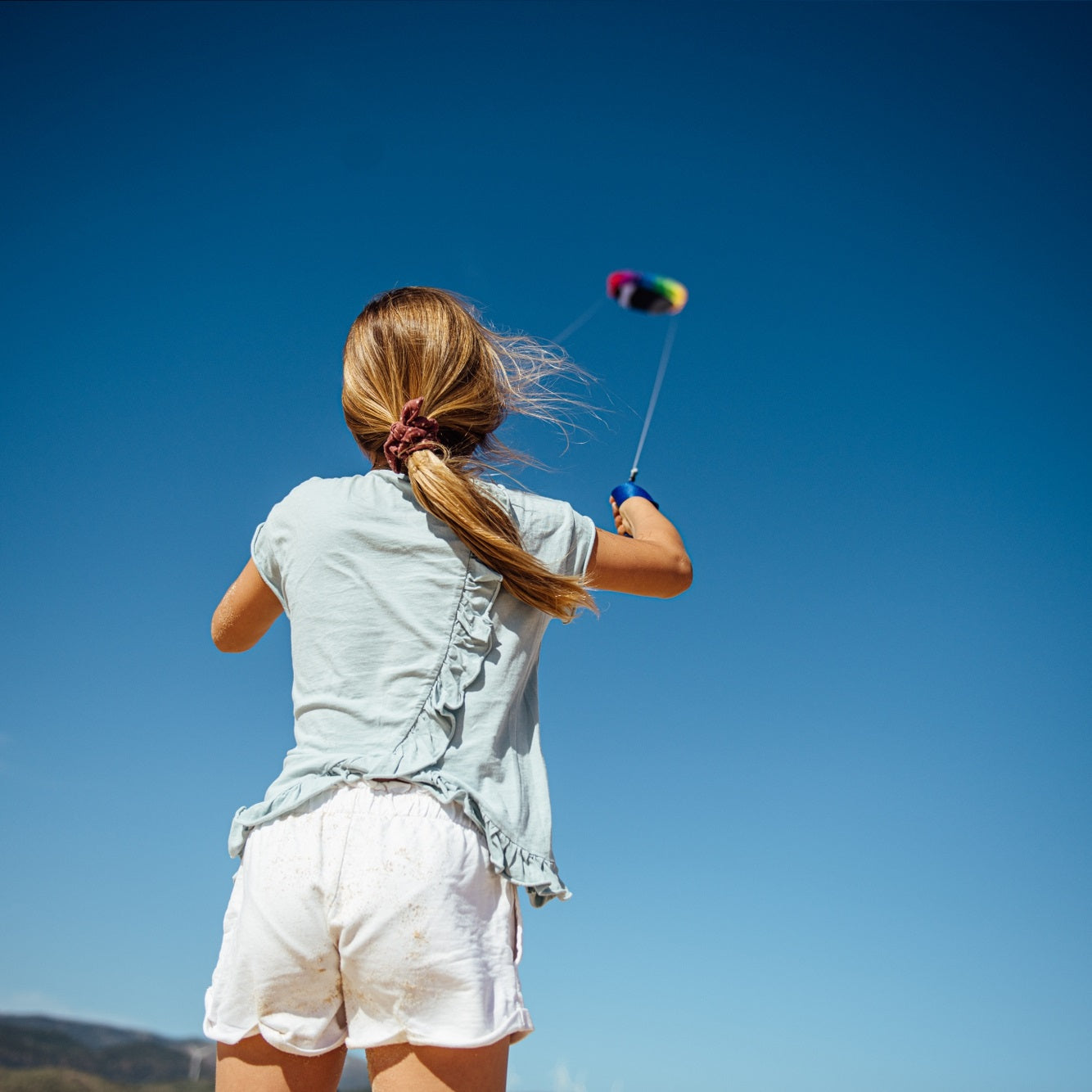 Der Drachen ist sofort einsatzbereit: Die Leinen sind bereits befestigt – einfach abwickeln und losfliegen! Zusammengelegt ist er sehr kompakt und ideal für unterwegs.