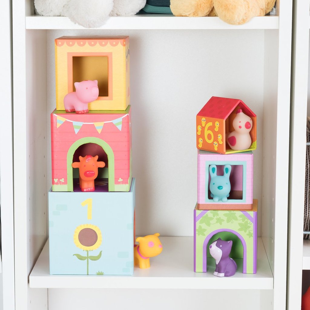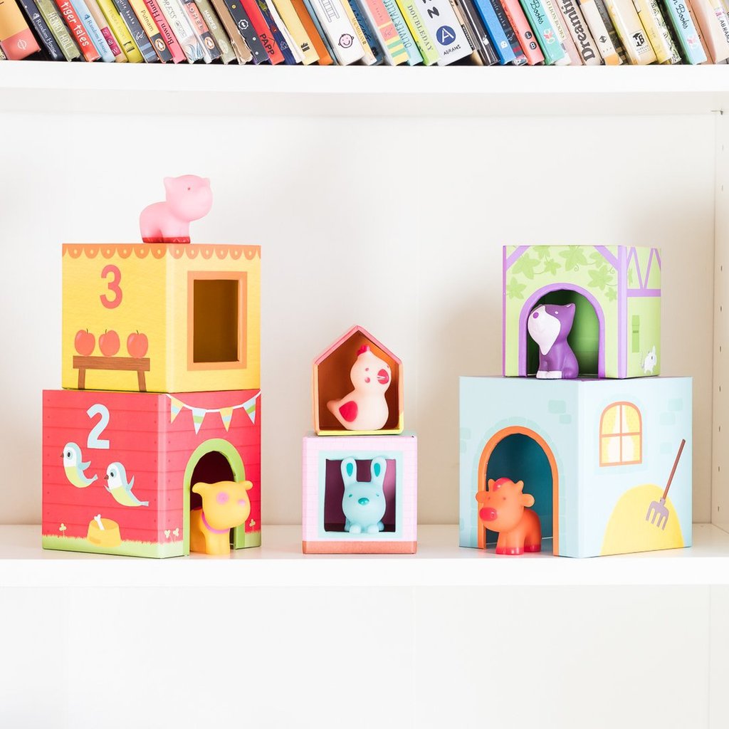 - Set enthält: 6 Blockschachteln, 6 Gummitiere