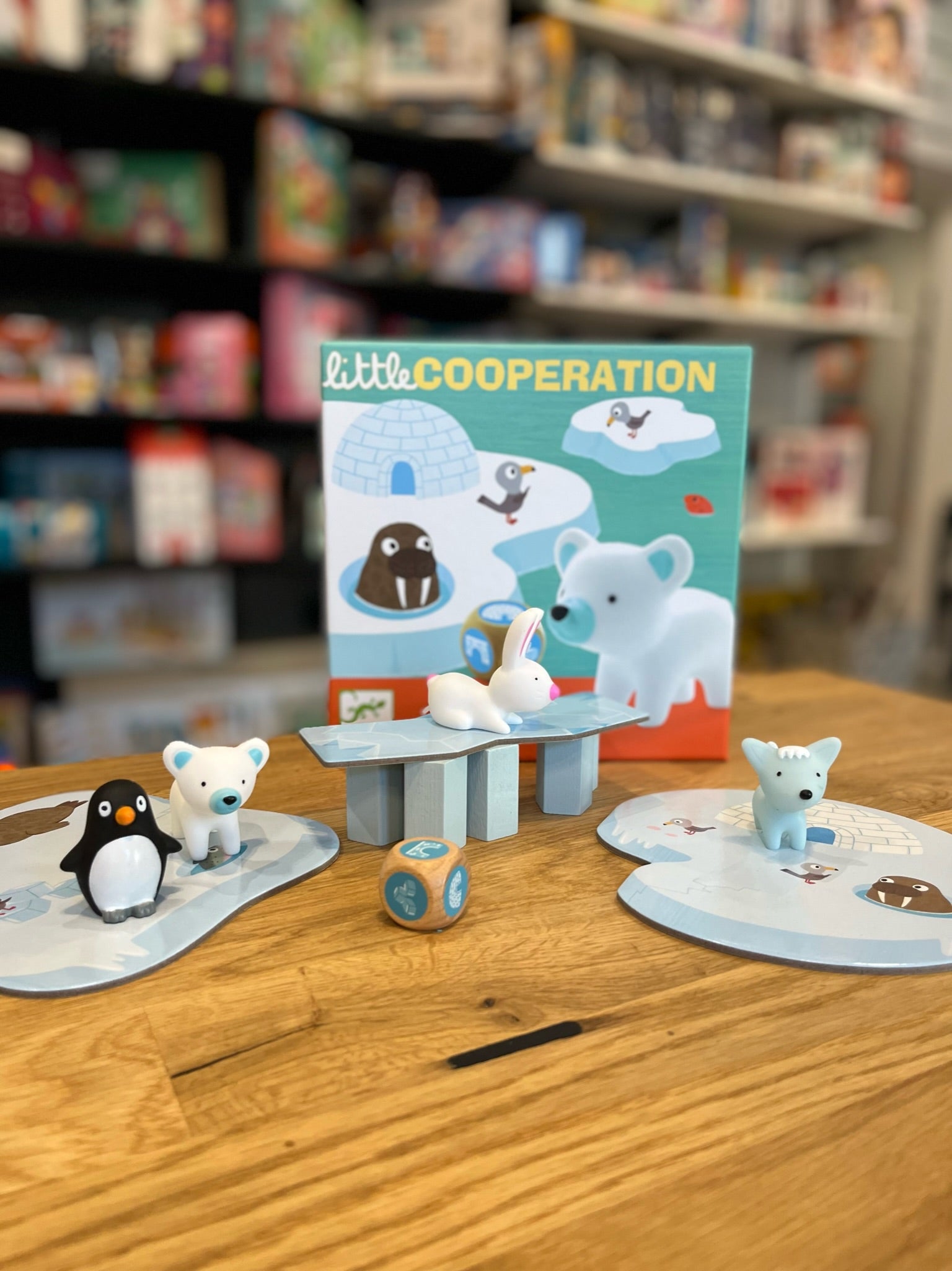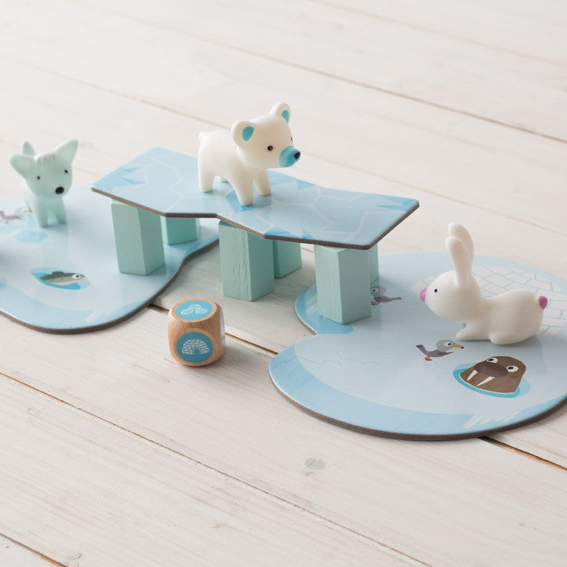 Ein wunderschön gestaltetes kooperatives Spiel (kein Spiel gegeneinander, sondern alle Spieler gewinnen oder verlieren mit dem Spiel) für die jüngsten Kinder. Schafft ihr es, alle Tiere sicher zum Iglu zu bringen, bevor die Brücke einstürzt?
