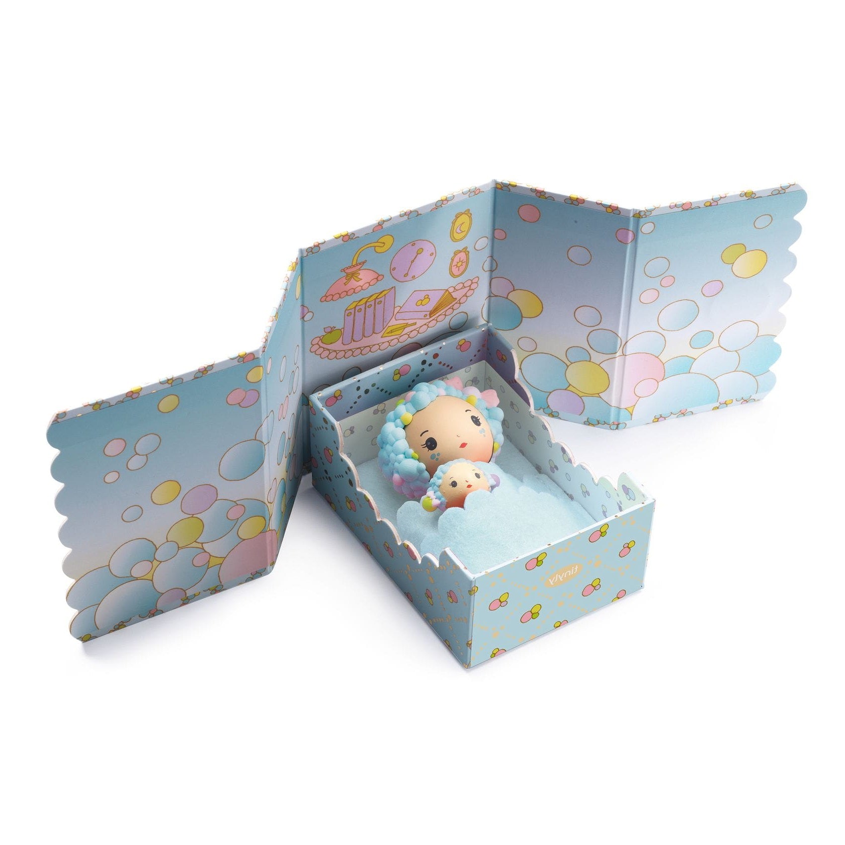 Minipokoik Blue i jej towarzyszki Bubble ukryty w uroczym magnetycznym pudełku. Otwórz je i odkryj przytulne wnętrze ozdobione bąbelkami i umeblowane wygodnym łóżkiem z kołderką. Pudełko jest łatwe w transporcie - można je zabrać ze sobą wszędzie. Wykonane z papieru i kartonu posiadającego certyfikat FSC®.