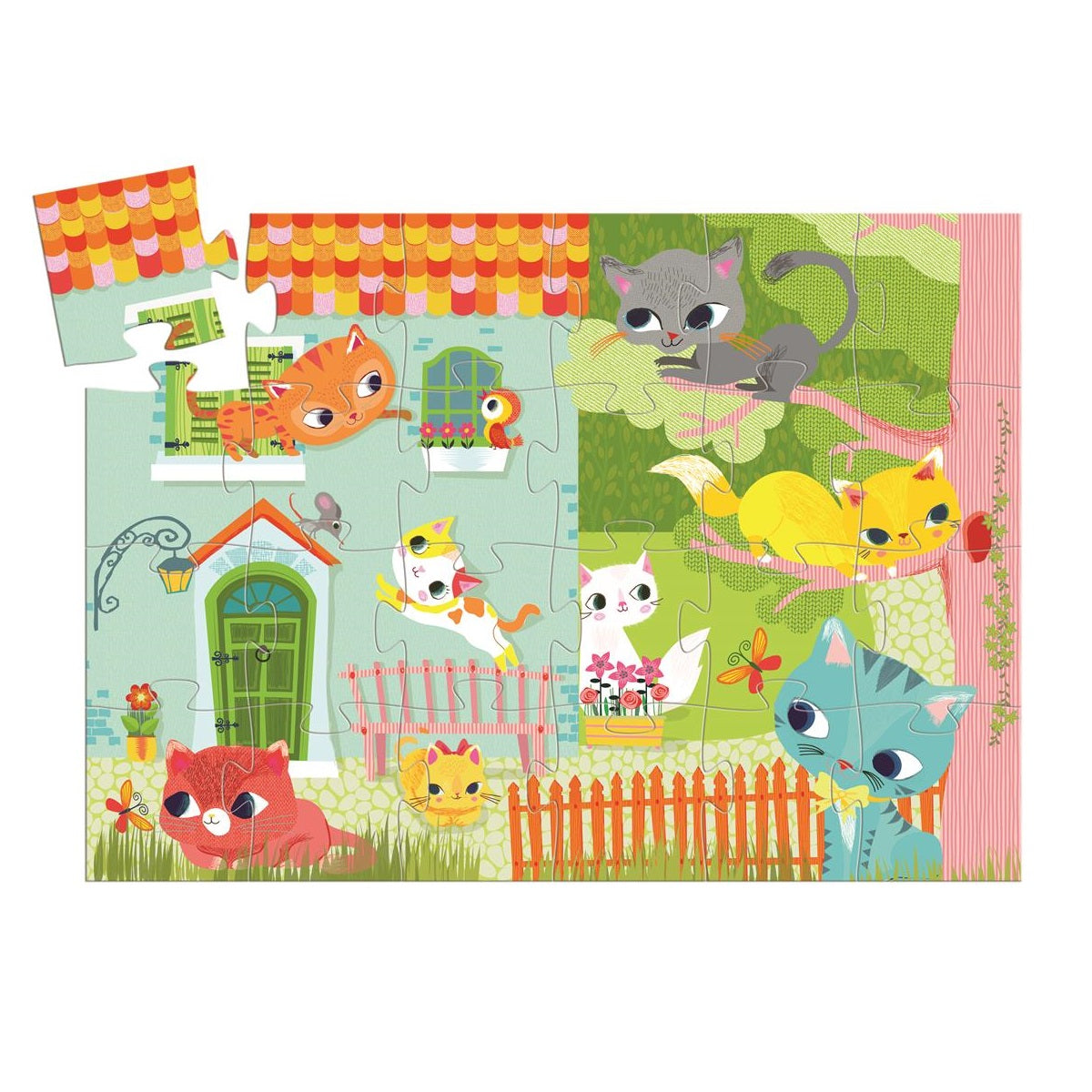 Großes Klapppuzzle verpackt in einer dekorativen Schachtel in Form einer Katze. Das Puzzle besteht aus 24 großen Elementen. Nach dem Zusammenbau des Puzzles gibt ein Bild von 42 x 30 cm. Sehr interessante Farben, passen die Stücke kleine Hände. Die Box kann eine tolle Dekoration für ein Kinderzimmer sein.