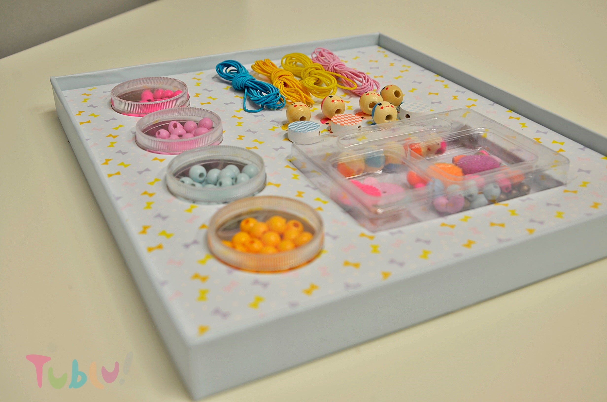 Entwerfen Sie Ihren eigenen Schmuck! Dieses fantastische Set zum Basteln von Holzschmuck wird kleine Damen begeistern. Das Set enthält: 4 Behälter mit Perlen, 4 gewachste Schnüre zum Auffädeln der Perlen und 200 Accessoires. Eine bebilderte Anleitung liegt dem Set bei. Für Kinder ab 8 Jahren.