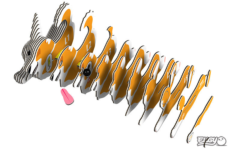- 3D-Puzzle zum Zusammensetzen eines Hundes.
