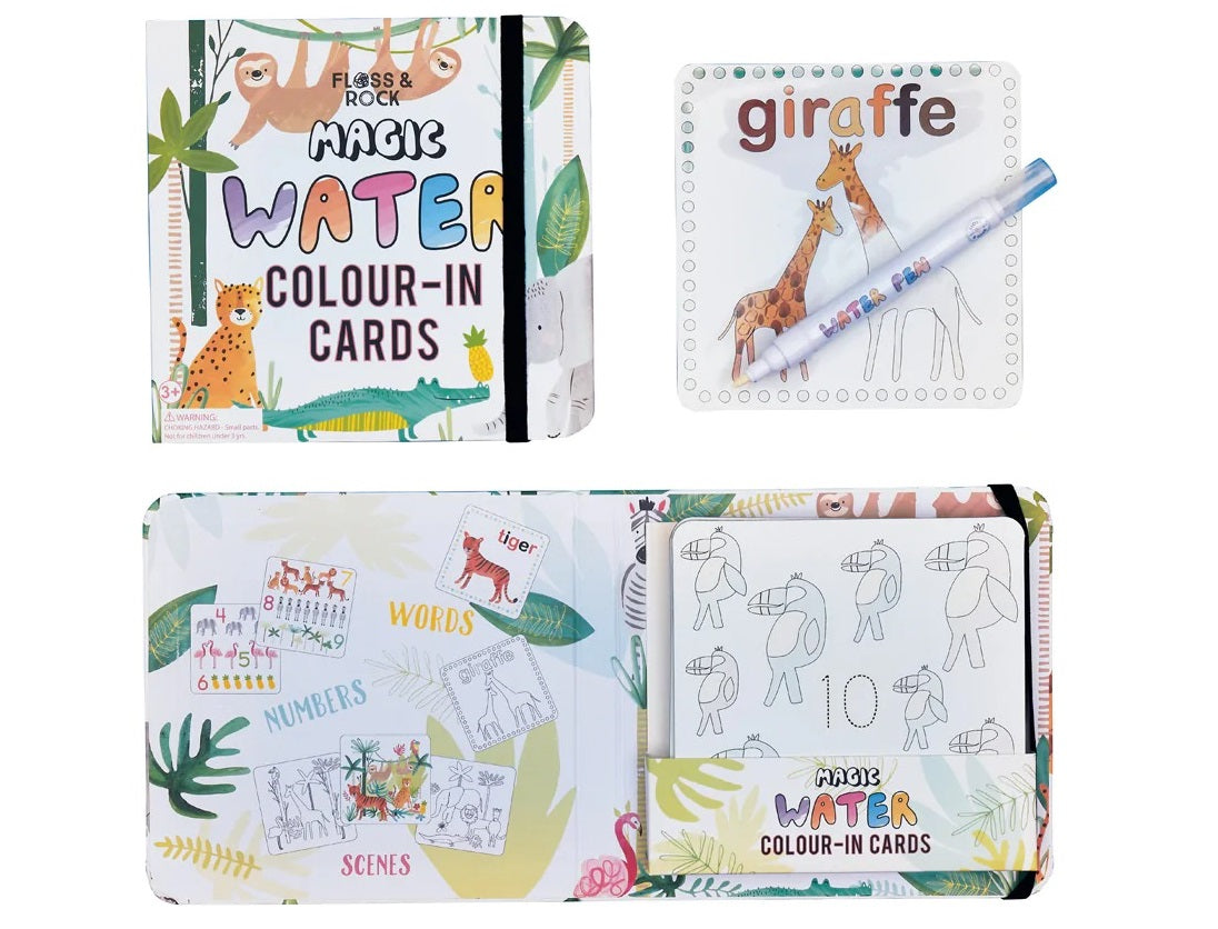 Das Set besteht aus 10 Karten und einem Wasserstift, sodass Kinder ohne Farbe oder Kreide malen können. Kinder lieben es zu malen und mit diesen zauberhaften Karten können sie ihre handwerklichen Fähigkeiten und ihre Kreativität auf sichere und umweltfreundliche Weise entwickeln. Jede Karte enthält Zahlen, Buchstaben und Abbildungen, die mehrmals neu eingefärbt werden können, sodass der Spaß nie endet!