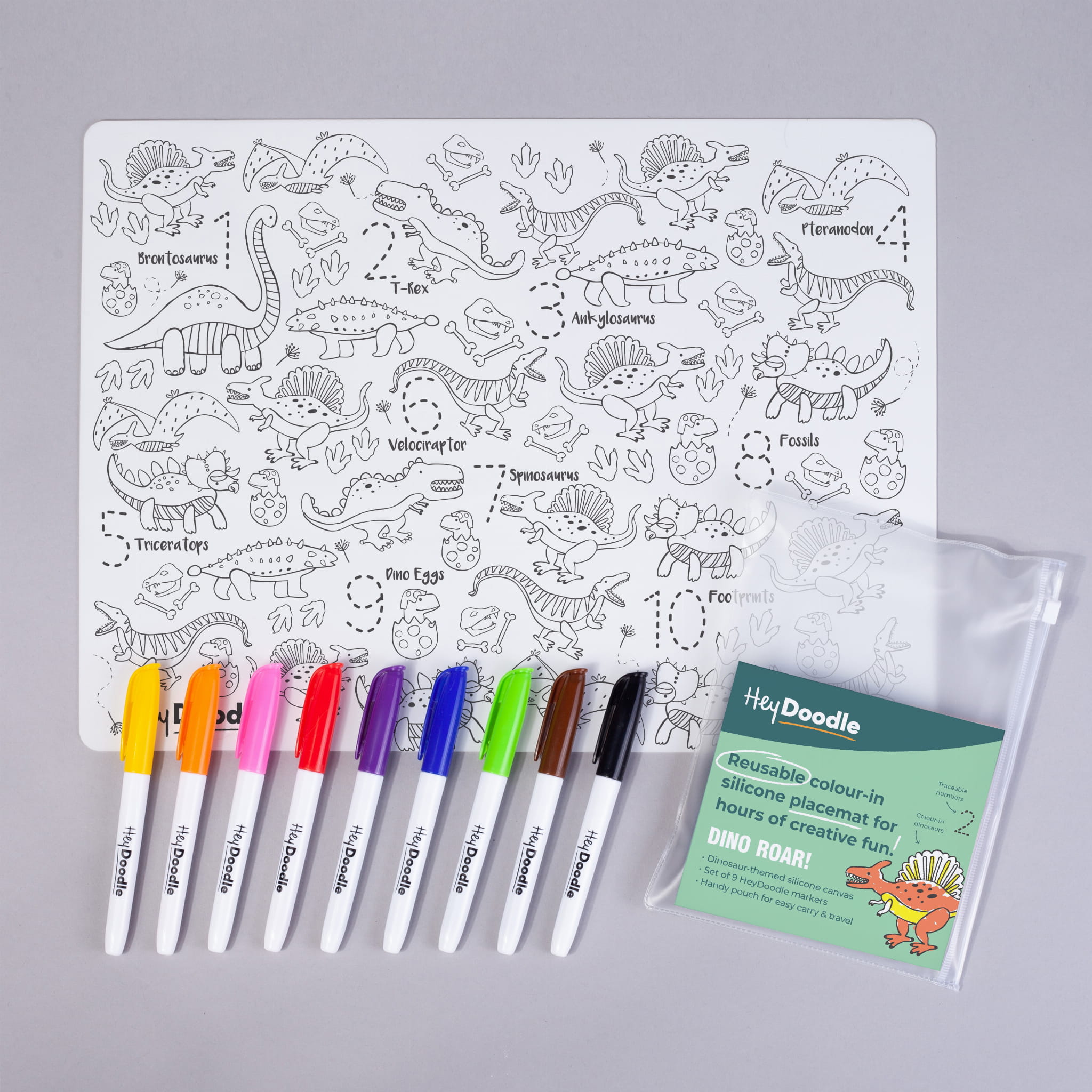 Eigenschaften von HeyDoodle's großer Silikon-Malmatte - Dinosaurier: