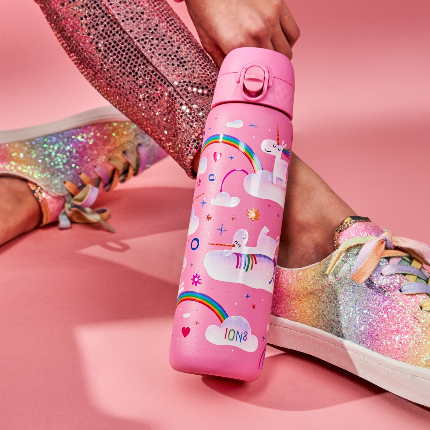 Stahl-Thermoflasche Typ ION8 500 ml in der Farbe: Einhorn-Regenbogen