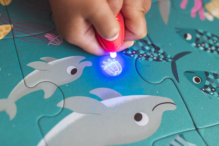 Leuchtendes Puzzle mit Mini-UV-Lampe – Ozean 24 Teile 3+