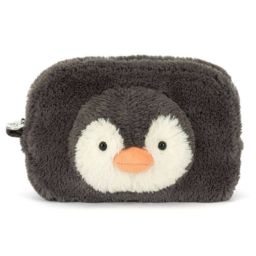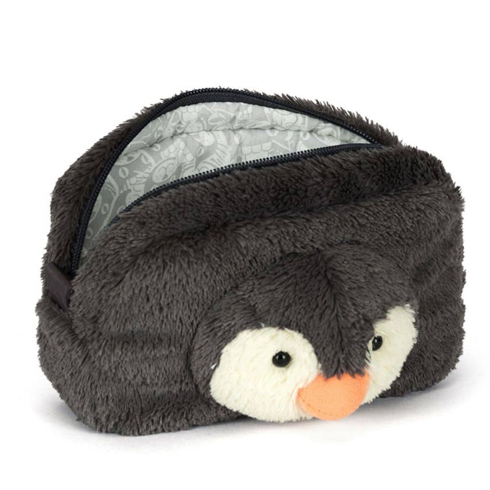 Federmäppchen, Kosmetiktasche Pingwin der Marke Jellycat in schwarzer Farbe. Ideal für Kleinigkeiten, praktisch und niedlich, ist es ein Begleiter für die täglichen Abenteuer von Groß und Klein. Die Kosmetiktasche wurde aus strapazierfähigen, hochwertigen und kindersicheren Materialien hergestellt.