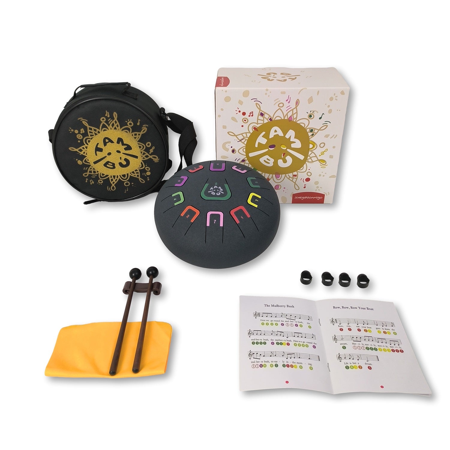 Die Tambu ist eine Art melodische Zungentrommel, die Sie in die aufregende Welt des Spielens mit Tönen einführen wird. Die Tambu ist eine kompakte, runde, 8 Zoll (20 cm) große Stahltrommel, die bis zu 11 Töne verbirgt. Ein ganzes Universum von Melodien steht Ihnen zur Verfügung. Lassen Sie sich von ihrem samtenen und entspannenden Klang überraschen und entfesseln Sie das künstlerische Talent Ihres Kindes oder Ihres eigenen!
