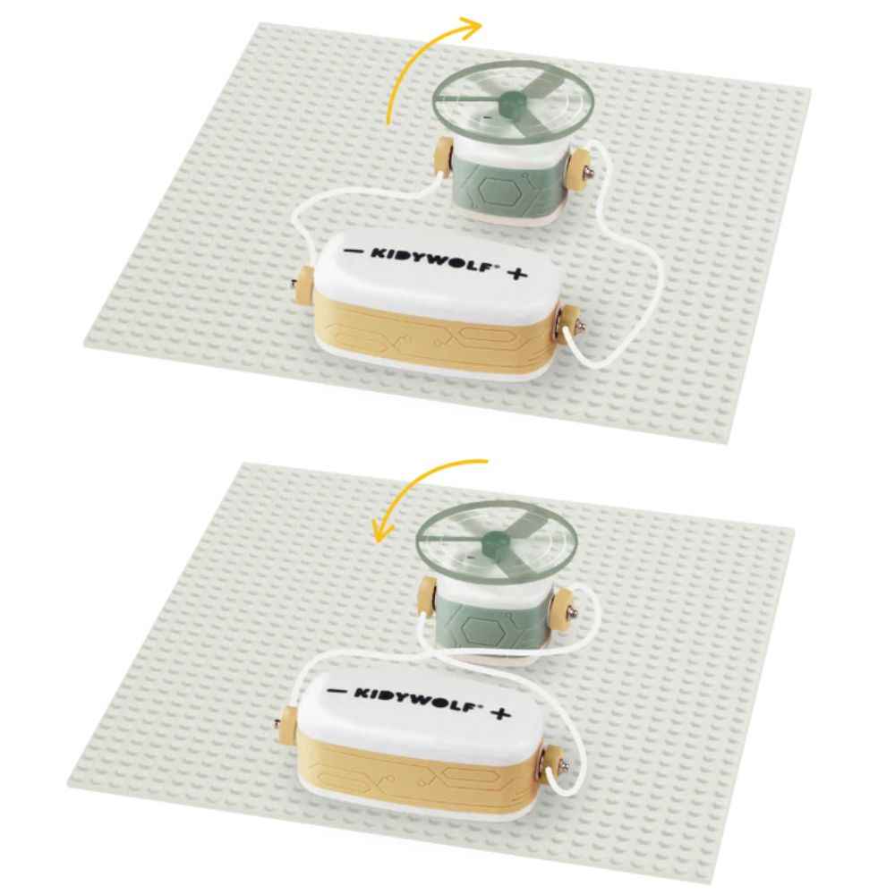 - Inhalt: 2 Montagegitter, 11 elektronische Bauteile (u.a. Motor, LED, Schalter, Propeller), 10 Steckverbinder, Mini-Leitfaden online per QR-Code, Bedienungsanleitung