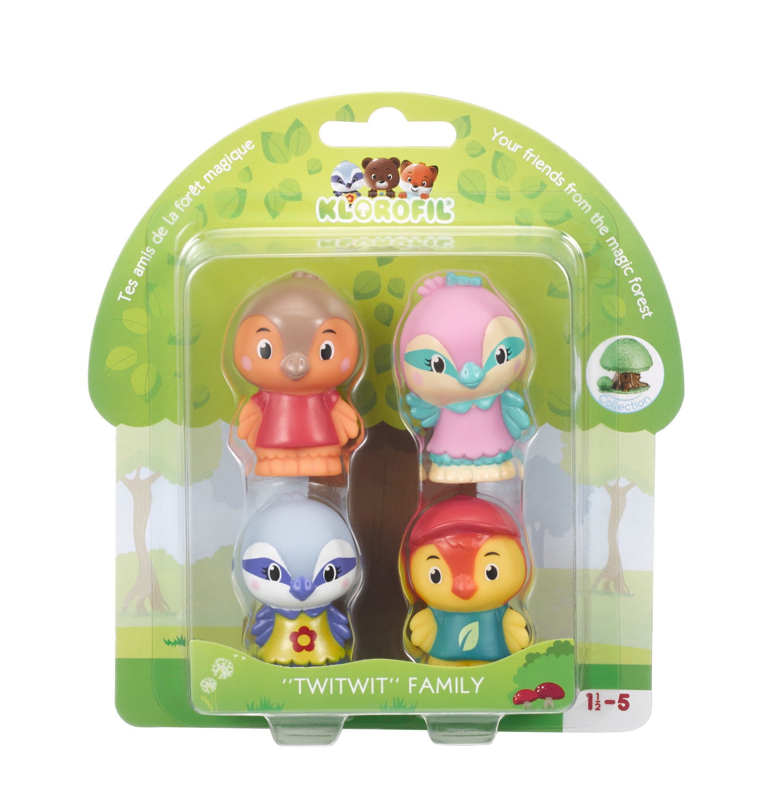 Die Welt von Klorofil ist ein magisches Land, in dem die fröhliche Familie der Vögel in Harmonie mit der Natur lebt. Die Vögel genießen die Abenteuer des Himmels, klettern in den Baumkronen und drehen Pirouetten über dem Waldboden. Sie alle lieben es zu spielen! Treffen Sie den abenteuerlustigen Papa Jim, die Besitzerin der schönsten Federn - Mama Lila. Und auch ihre amüsierte Tochter Patty, die den Park liebt, und Sohn Nino, ein Fan von geheimen Plänen und Puzzles. Wenn Sie noch mehr Spielmöglichkeiten einführen möchten, vervollständigen Sie Ihre Figurensammlung mit einer anderen Familie liebenswerter Tiere: den Teddybären, Pandas, Bibern oder Eichhörnchen.
