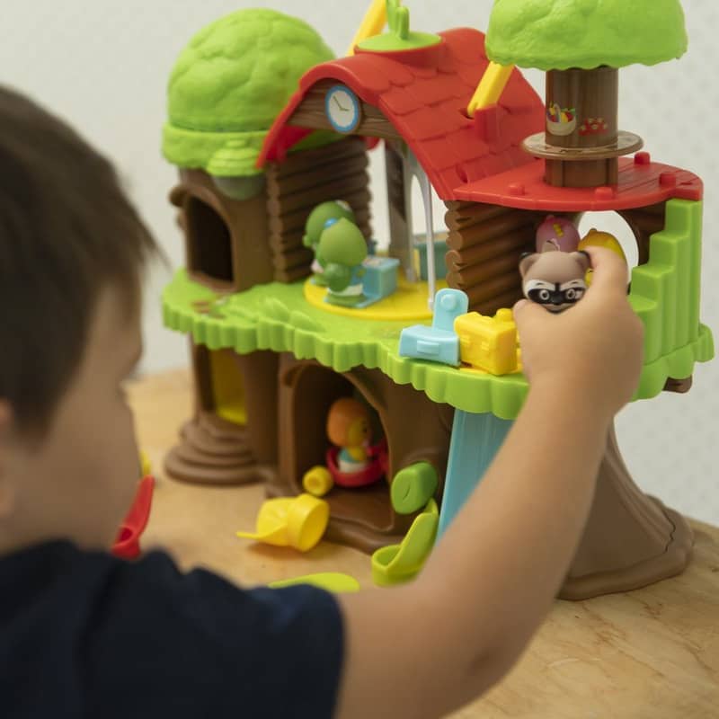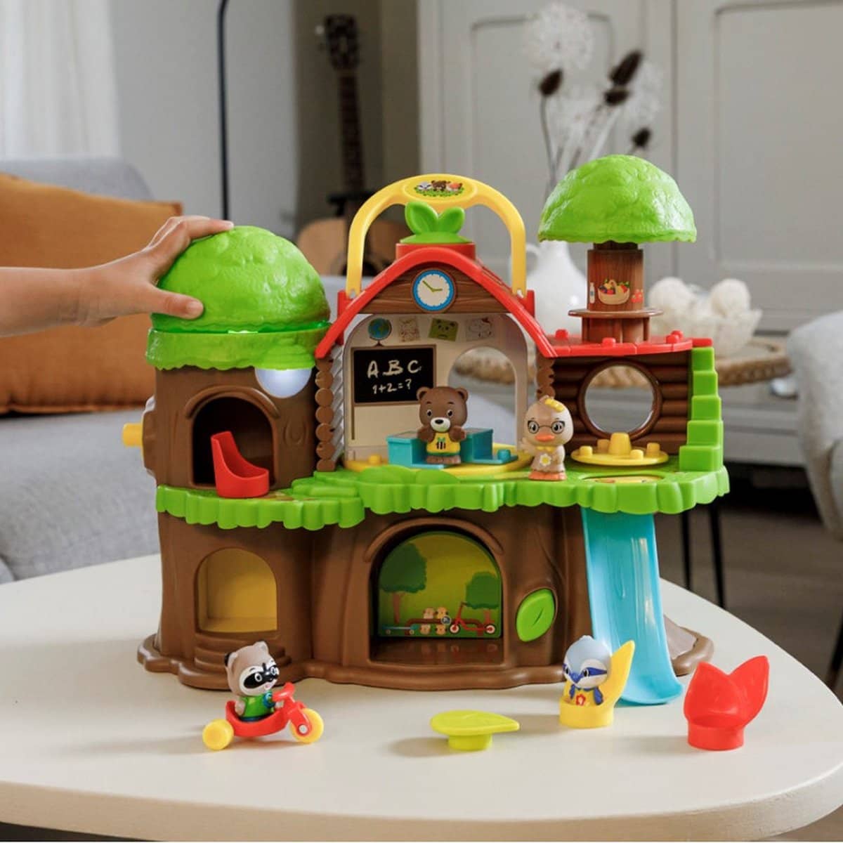 Die Welt von Klorofil ist ein magischer Ort, an dem zauberhafte Tiere in Harmonie mit der Natur leben. In dem magischen Land gibt es eine Waldschule, die zwei fleißige Schüler und einen Lehrer (Ente, Waschbär, Schildkröte) hat. Jeder Tag bietet neue Herausforderungen und neues Wissen. Die Schüler gelangen mit einem Aufzug in das Klassenzimmer (durch Drehen der Kurbel lässt sich der Aufzug nach oben und unten bewegen). Im Inneren befinden sich Tische, eine Tafel und die Kunstwerke der Schüler. Oben in der Schule findet man ein Blatt, dreht man es um, kommen ein Schreibtisch und das Büro des Lehrers zum Vorschein. Wenn es Zeit für eine Pause und eine Mahlzeit ist, suchen sich die Tiere einen bequemen Platz. Die Schüler können auch die Rutsche, das Karussell, das Dreirad und die ruhige Leseecke nutzen. Der Baum verbirgt einen magischen Ort in seiner Krone. Finde ihn, setze ein Haustier hinein und der Baum erstrahlt im Licht.