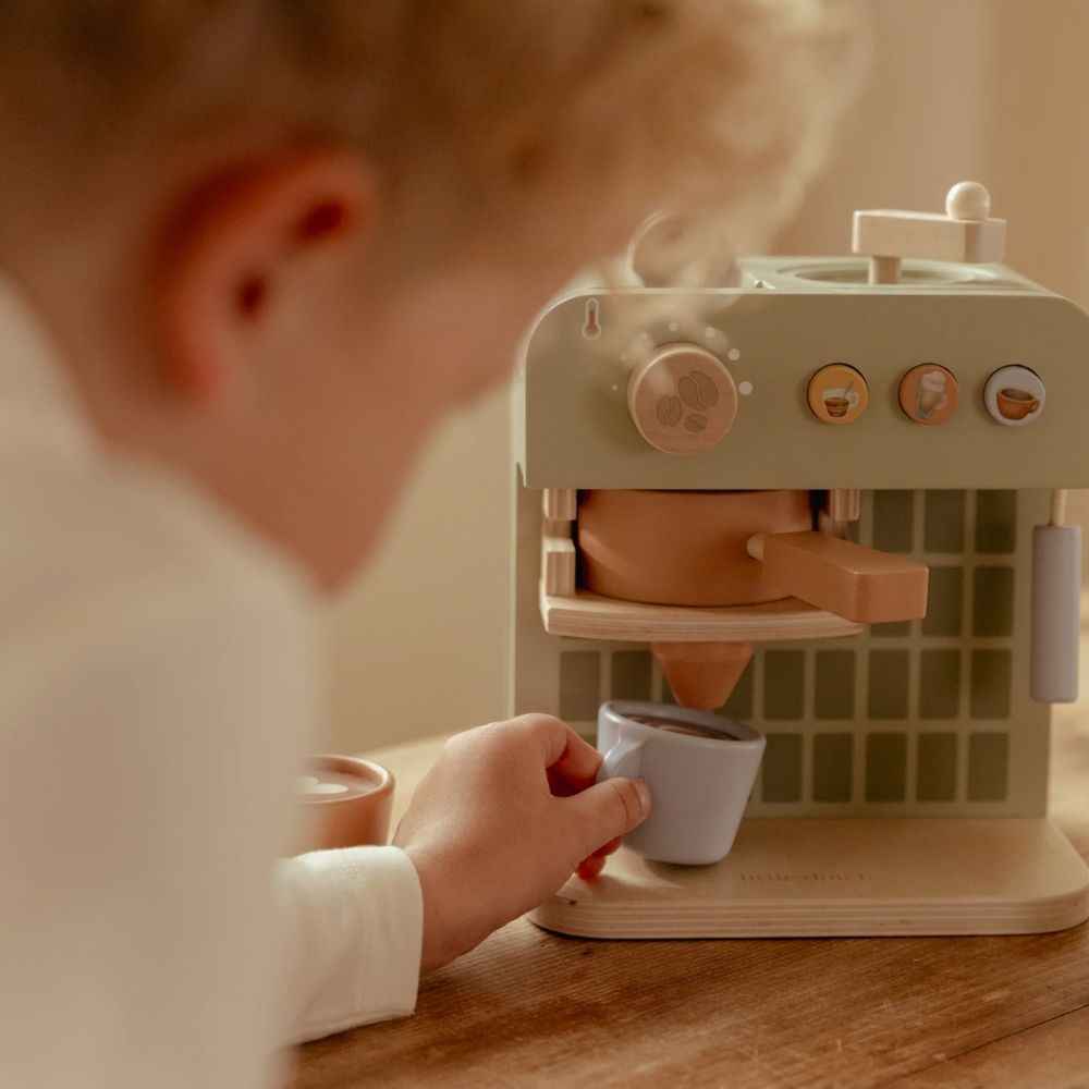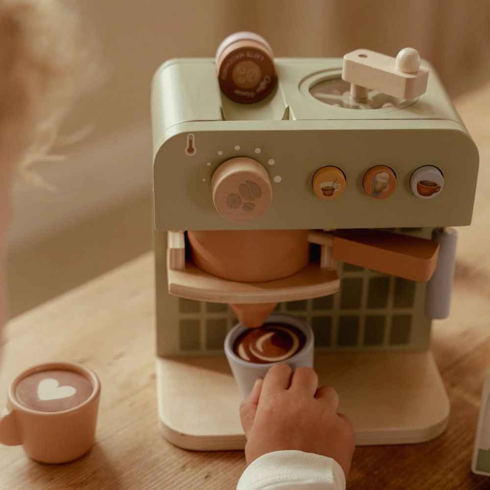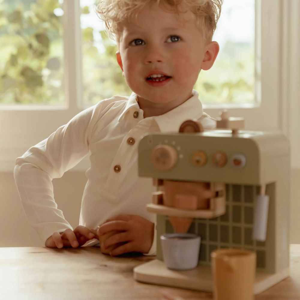 Little Dutch – eine Kaffeemaschine aus Holz, die Ihr Kind in die Welt der Erwachsenenrituale entführt und es zum kreativen Spielen als Barista anregt