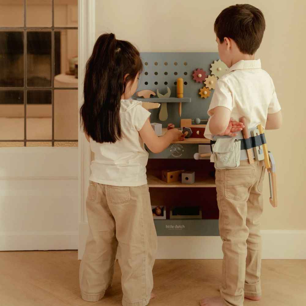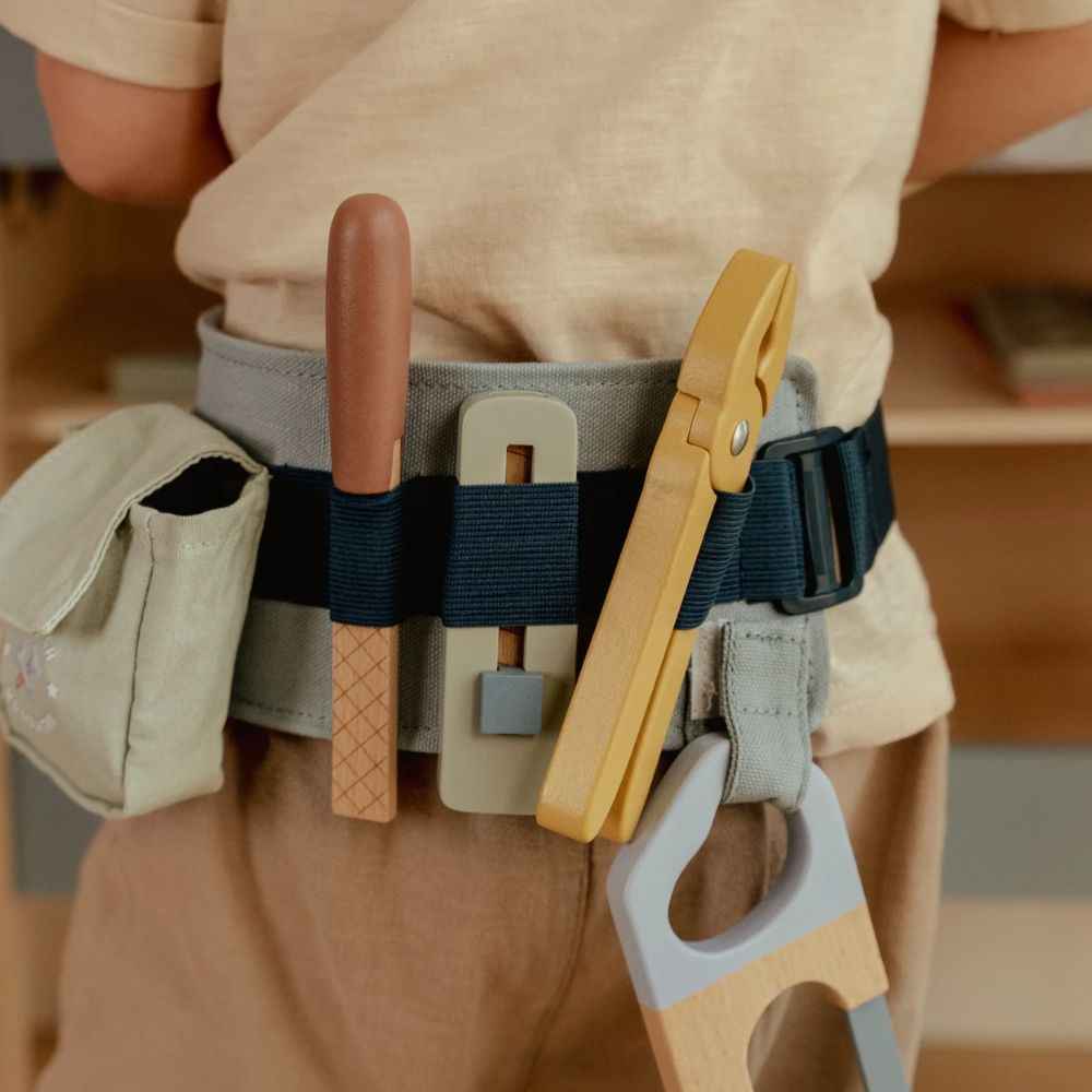 Der Werkzeuggürtel von Little Dutch ist die perfekte Spielidee für kleine Heimwerker. Es gibt so viele Dinge im Haus zu bauen und zu reparieren. Im Set enthalten sind: ein verstellbarer Werkzeuggürtel mit Tasche, ein Maßband, eine Kombizange, eine Säge, ein Messer und eine Feile. Mit diesem Spielzeug hat Ihr Kind alle notwendigen Werkzeuge für neue Bauprojekte. Alle Werkzeuge sind aus FSC-zertifiziertem Holz gefertigt und mit sicherer Wasserfarbe in hübschen Pastellfarben lackiert.