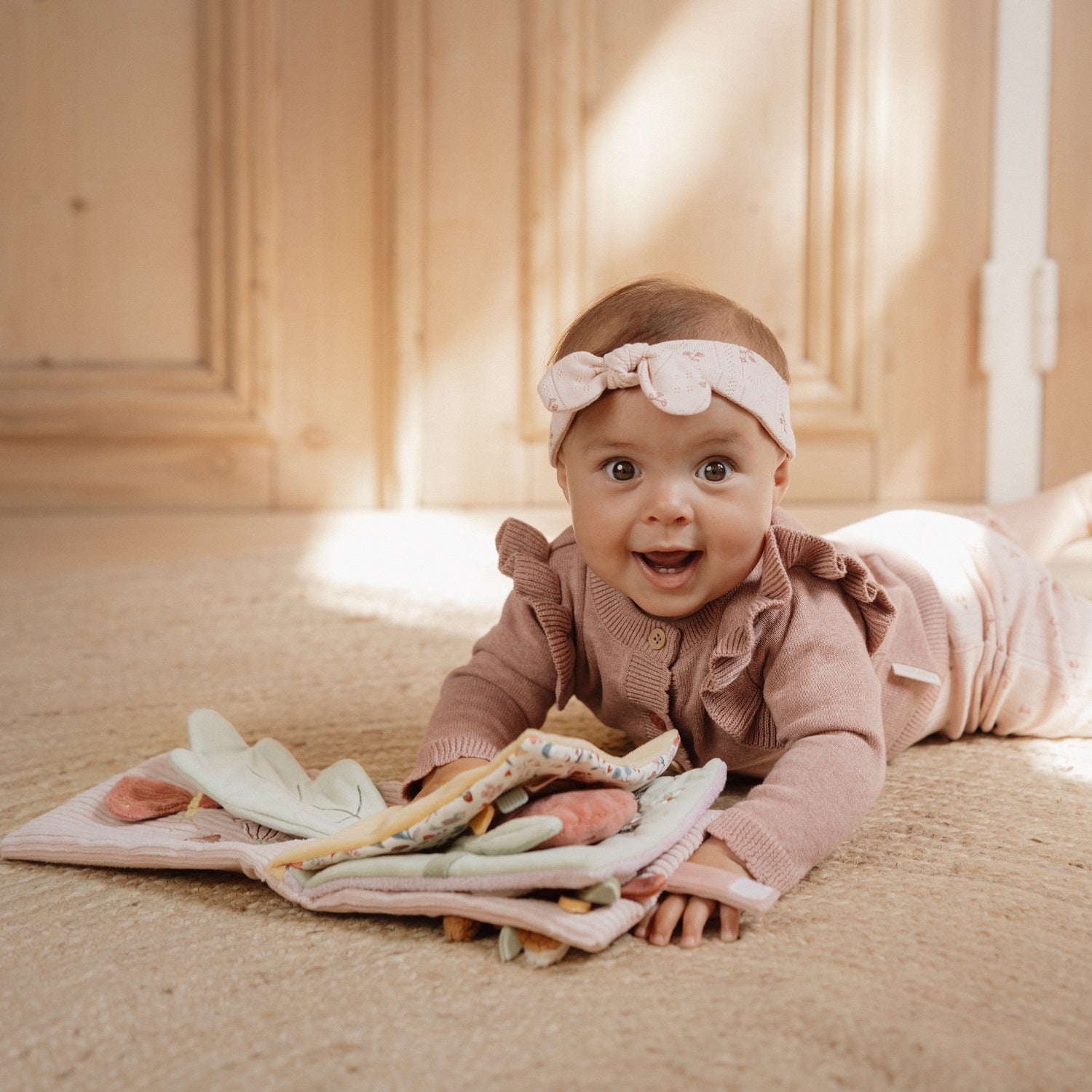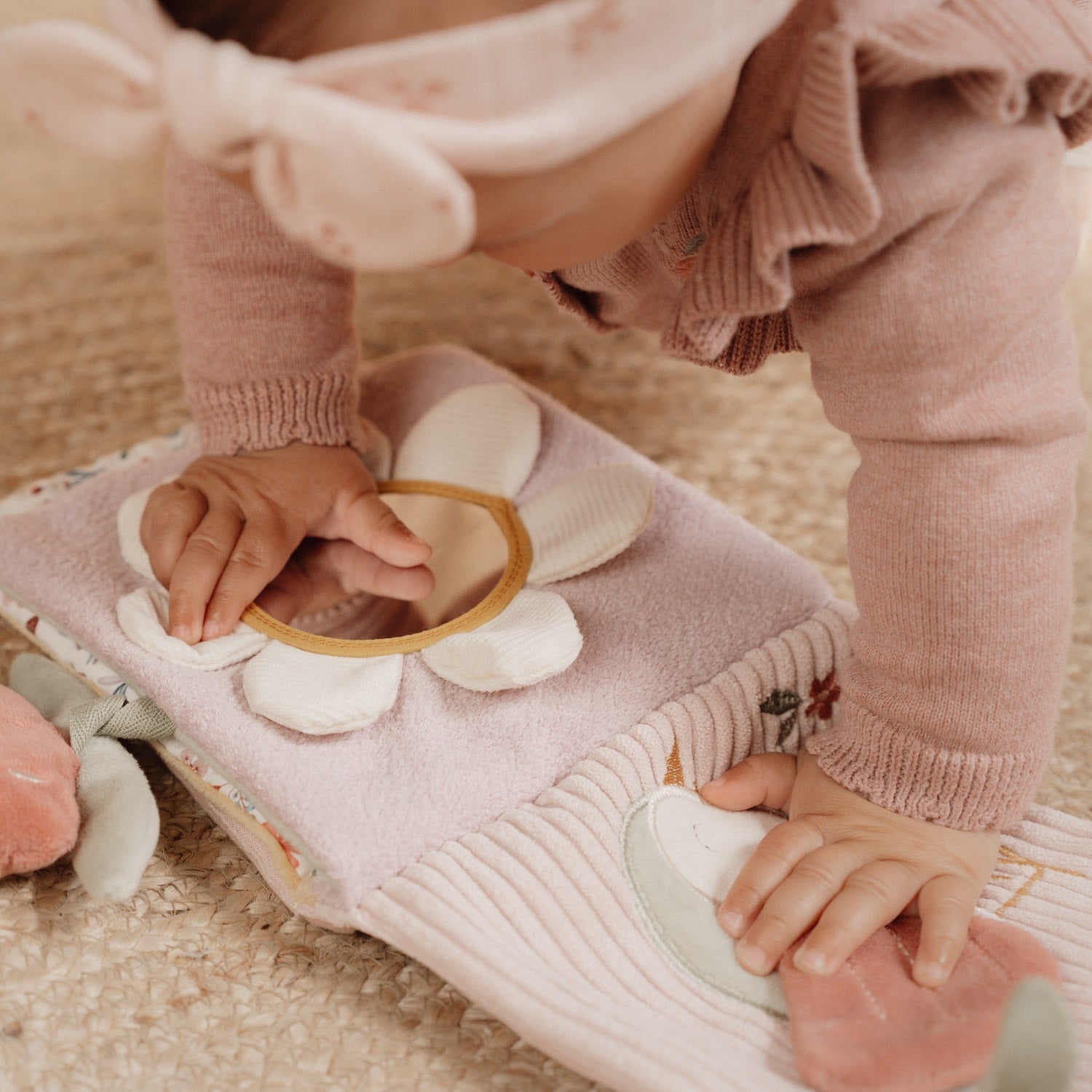 Das weiche Büchlein macht viel Spaß und ist eine fantastische Gelegenheit, den magischen Garten gemeinsam mit Saren zu erkunden. Im Inneren gibt es eine Vielzahl von Texturen und weichen Materialien, die die Sinne und die Hand-Augen-Koordination Ihres Kindes fördern. Das Buch hat auch einen Lieblingsspiegel, eine Rassel, Anhänger und Rascheln.