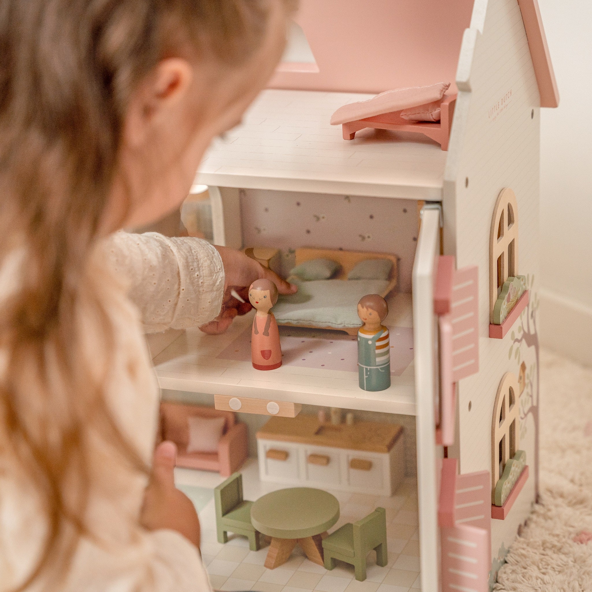 Das große Puppenhaus von Little Dutch ist der Traum jeder kleinen Dame. Dieses bezaubernde Häuschen mit rosa Dach und Holzfensterläden regt Kinder dazu an, ihrer Fantasie und Kreativität freien Lauf zu lassen. Wunderschöne Details wie zu öffnende Fensterläden und ein Dach, das sich öffnen lässt, um Zugang zum Innenraum zu erhalten, machen diesen Raum zu einem Ort voller Möglichkeiten.