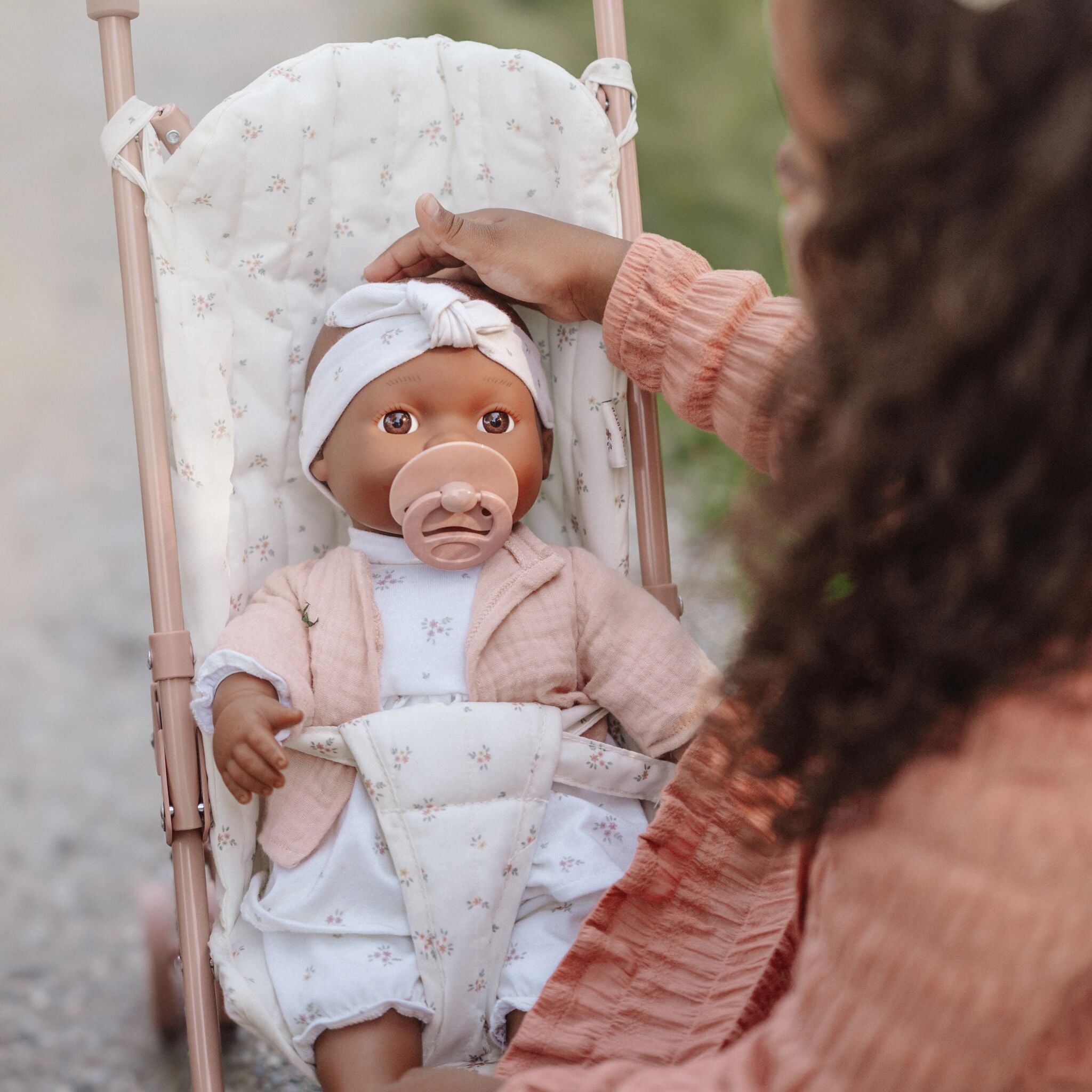 Der faltbare Puppenwagen mit rosafarbenem Gestell, rosafarbenen weichen Griffen und 4 rosafarbenen Rädern wurde entwickelt, um das kreative Spiel zu fördern und das Verantwortungsbewusstsein der kleinen Betreuer zu entwickeln, und lässt sich zur einfachen Aufbewahrung leicht zusammenlegen. Beobachten Sie, wie Ihr Kind mit Freude den Puppenwagen schiebt, Schlaflieder singt und anhält, um sein Puppenbaby zu füttern oder zu trösten. Das Spielzeug lehrt wertvolle Lebenskompetenzen durch die Magie des Spiels.