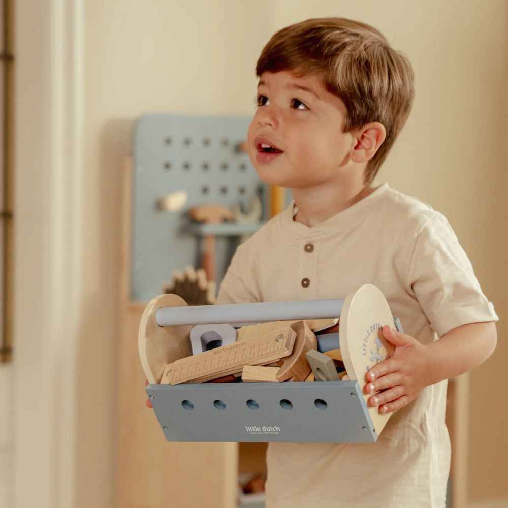 Dieses Holzwerkzeugset ist ideal für kleine Konstrukteure, die gerne basteln und entdecken, wie die Welt um sie herum funktioniert. Es enthält alles, was für die ersten Reparatur- und Bauarbeiten benötigt wird – eine Werkzeugkiste, Werkzeuge und Schraubelemente. So können Kinder in die Rolle echter Heimwerker schlüpfen, ihre motorischen Fähigkeiten entwickeln und spielerisch lernen.