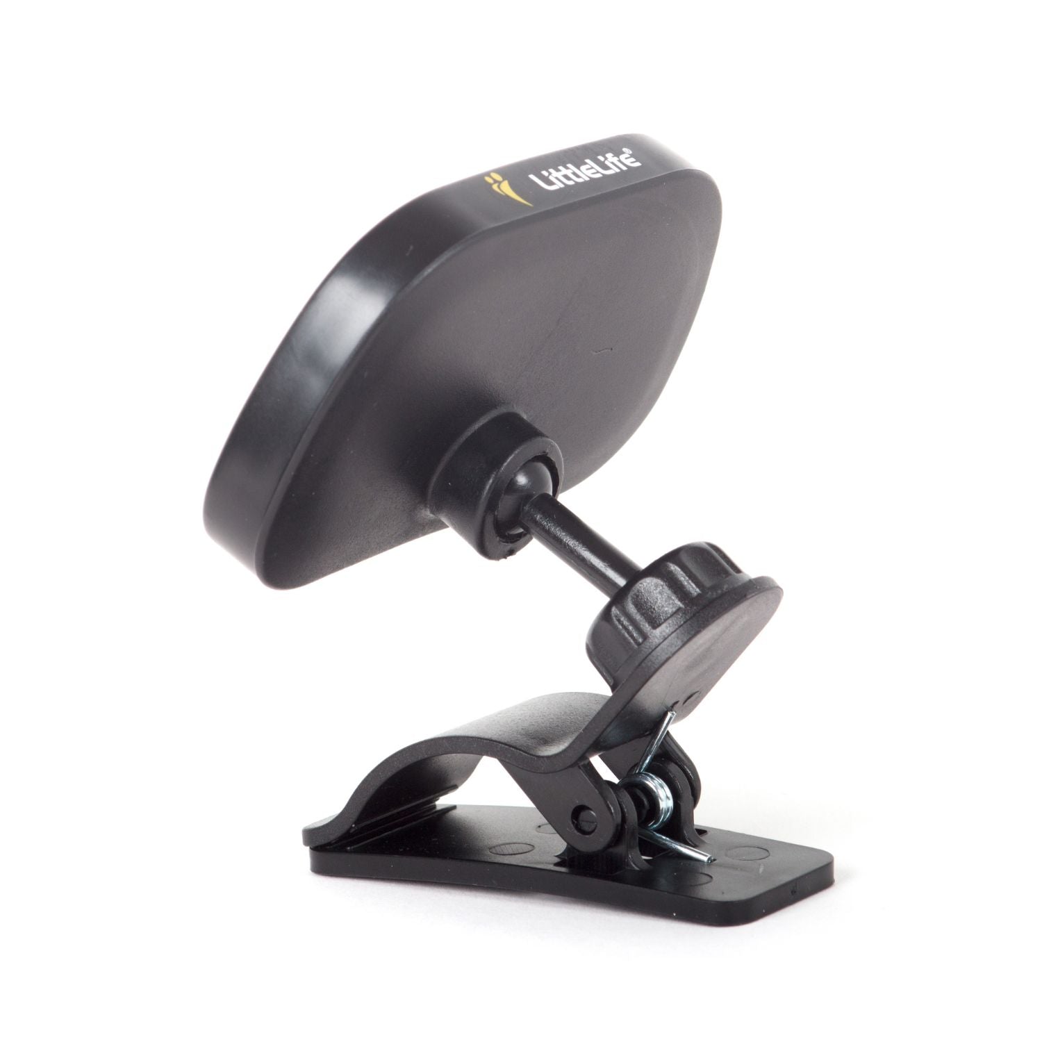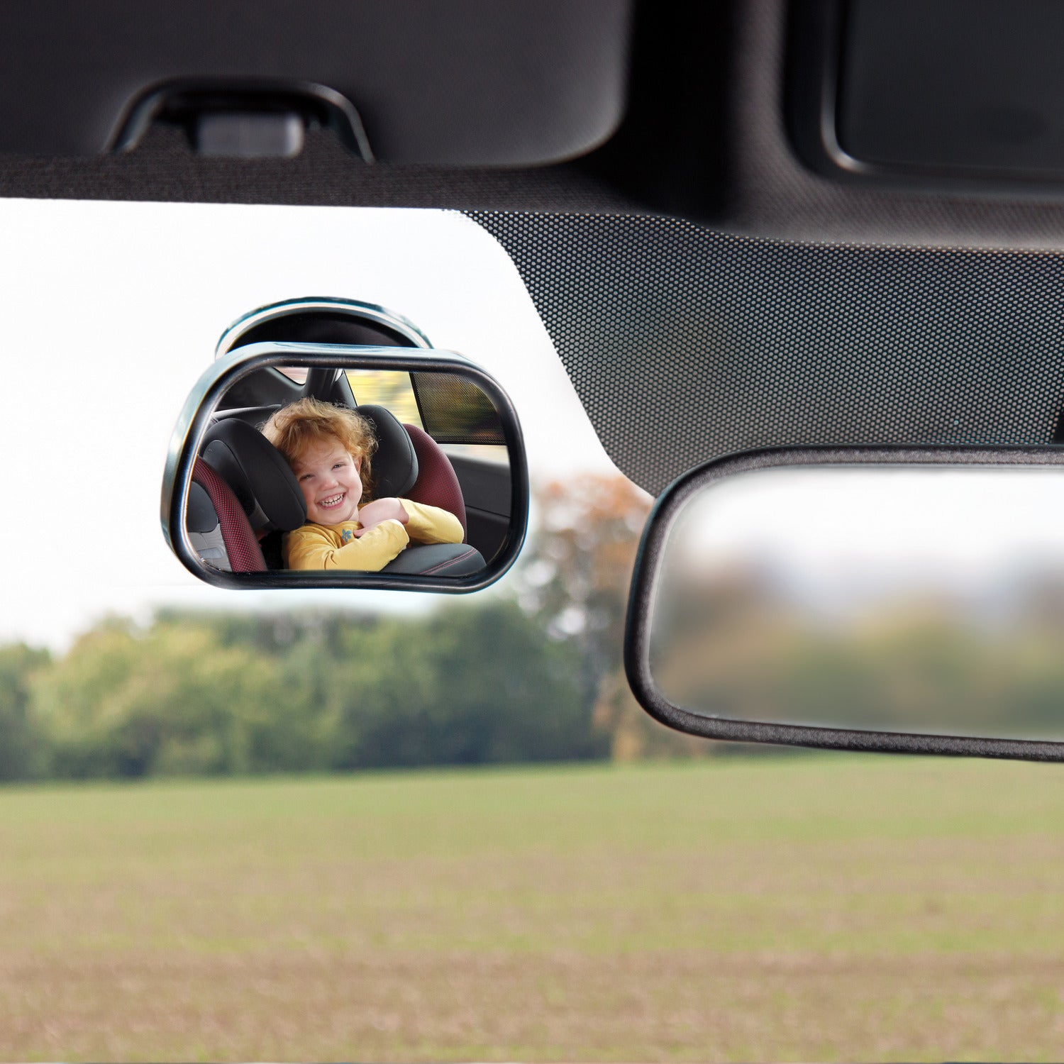 Er kann mit einem Saugnapf an der Windschutzscheibe oder mit einem Clip an der Sonnenblende befestigt werden. Der Spiegel ist mit einem Kugelgelenk ausgestattet, wodurch sich der Winkel leicht einstellen lässt. So kann der Elternteil den Spiegel so einstellen, dass er die optimale Sicht auf das dahinter sitzende Kind hat.