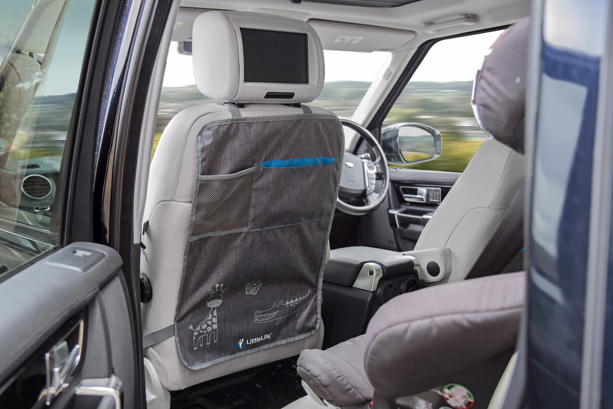 Die vielseitige Matte ist eine sehr praktische Ergänzung zur Ausstattung Ihres Autos. Sie schützt die Sitzlehne vor Schmutz und mechanischen Beschädigungen. Der obere Teil der Matte hat zwei Taschen, in denen verschiedene Kindersachen verstaut werden können. Dank der einfachen und bequemen Befestigung mit elastischen Bändern bewegt sich die Matte nicht und blockiert auch nicht den Zugang zum Sicherheitsgurt. Die Matte ist aus strapazierfähigem, schmutzabweisendem Material gefertigt.
