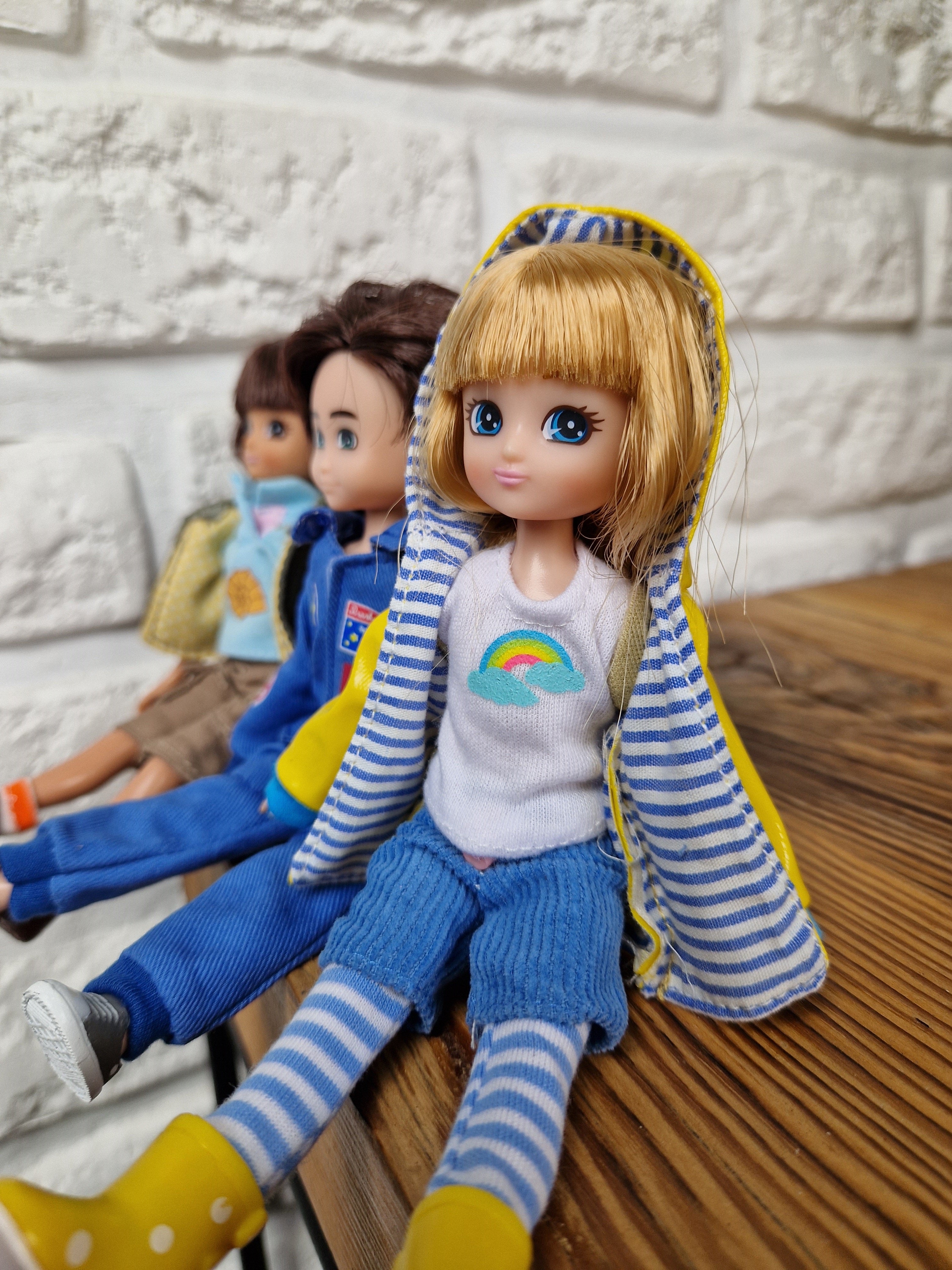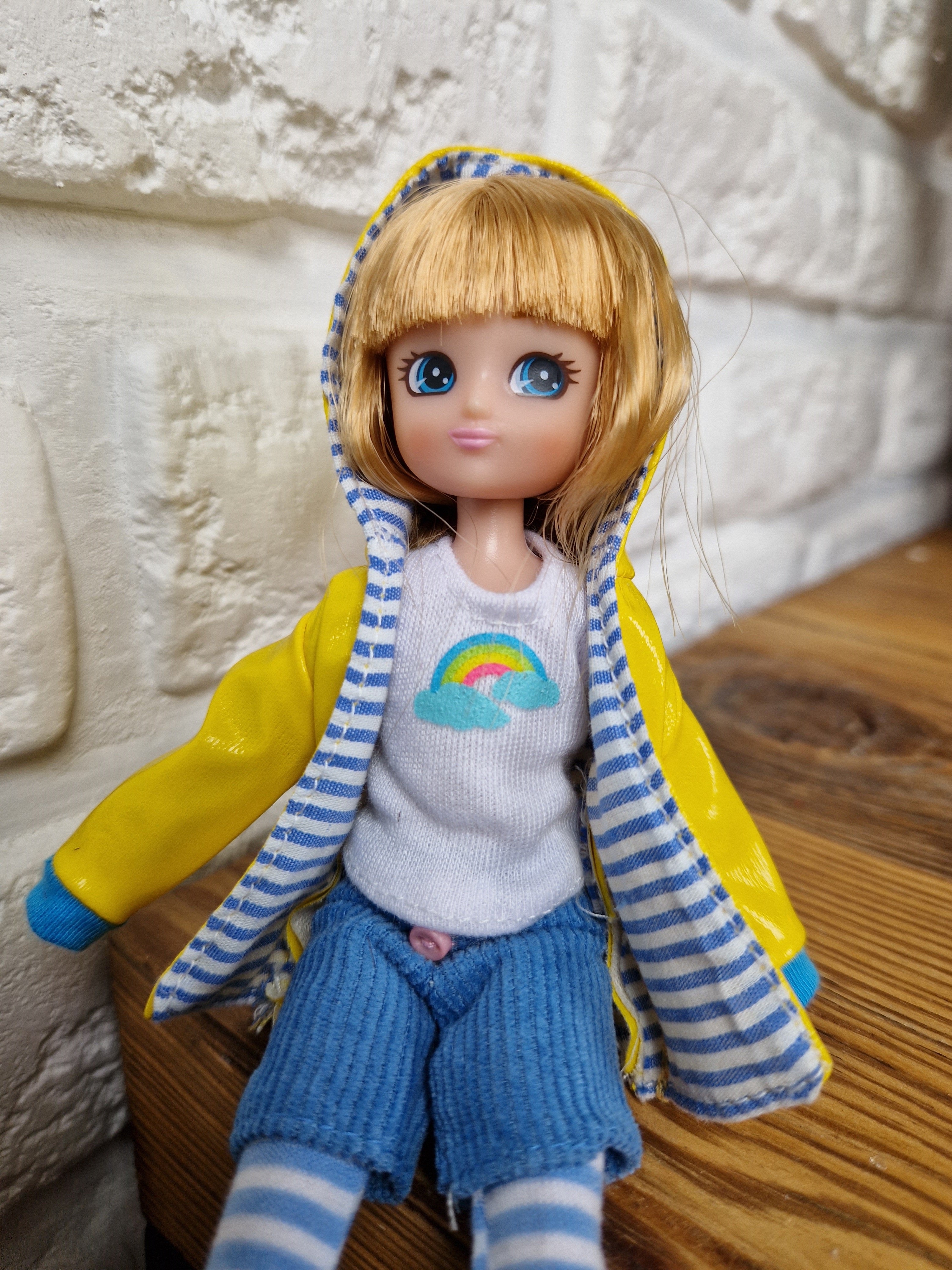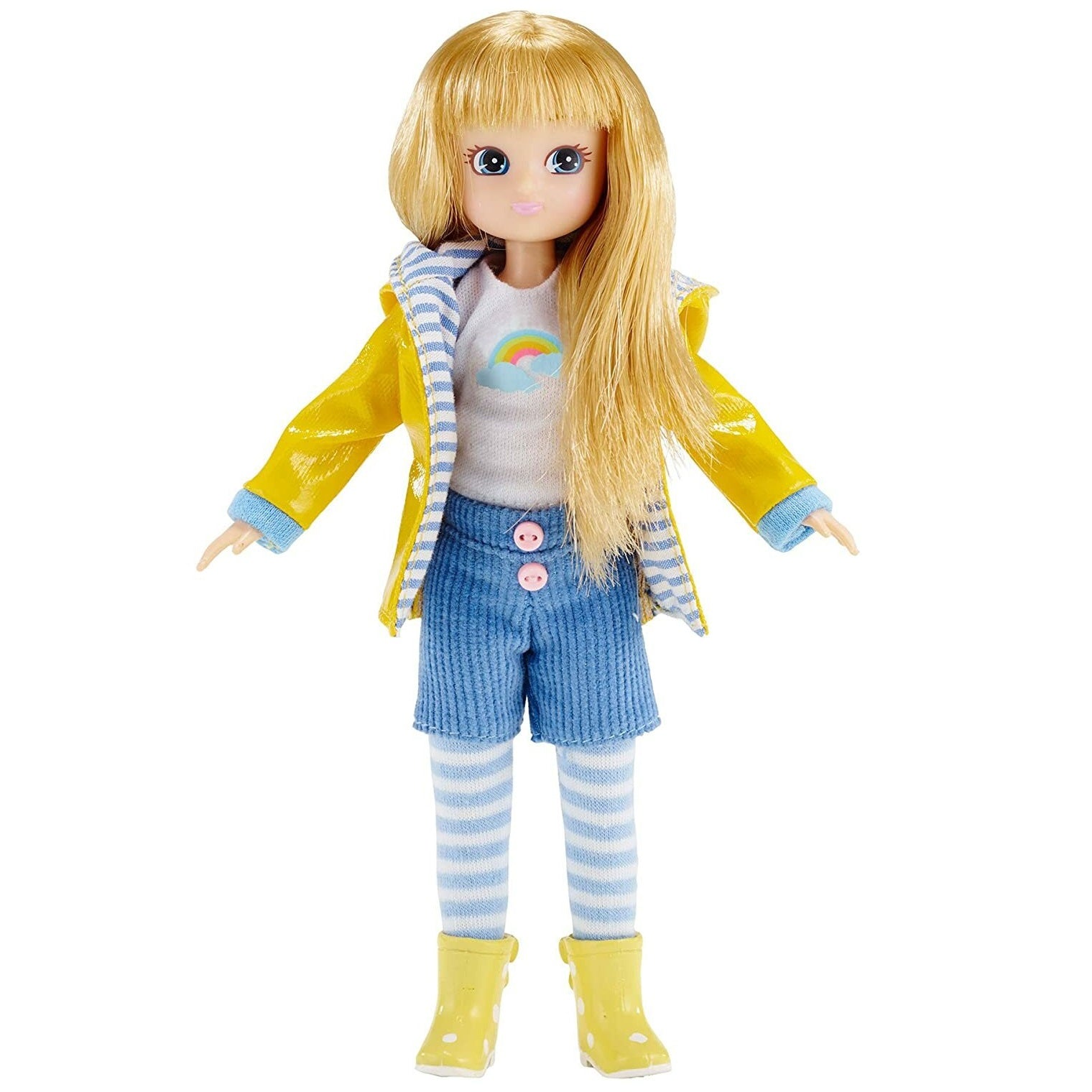 - Im Set enthalten: Puppe mit Bluse, Leggings und Shorts, mit Regenjacke und Gummistiefeln