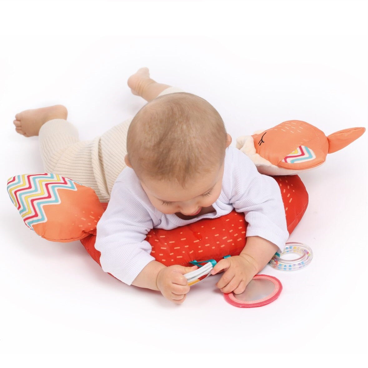 Ein nützliches, attraktives und entwicklungsförderndes Accessoire für das Baby, das ihm lange Zeit erhalten bleiben wird. Mit einer Vielzahl von sinnesanregenden Elementen. Für Säuglinge hilft es, den Muskeltonus in der Bauchlage zu entwickeln, für ältere Kinder dient es als Reisekissen.