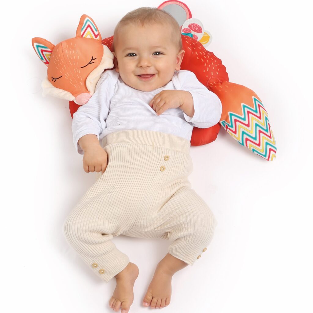 - unter dem Kopf - der Fuchs schmiegt sich zärtlich an Ihr Baby, wenn es auf dem Rücken liegt,