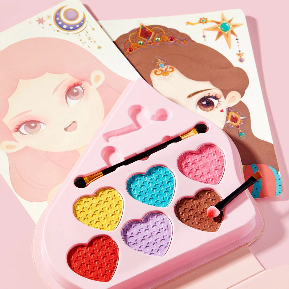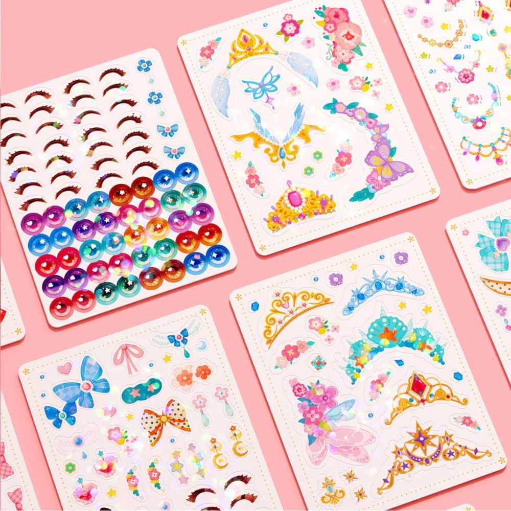 Das Set bietet verschiedene Spielmöglichkeiten: Aufkleben von Stickern und Diamanten, Rubbeln und Schminken.