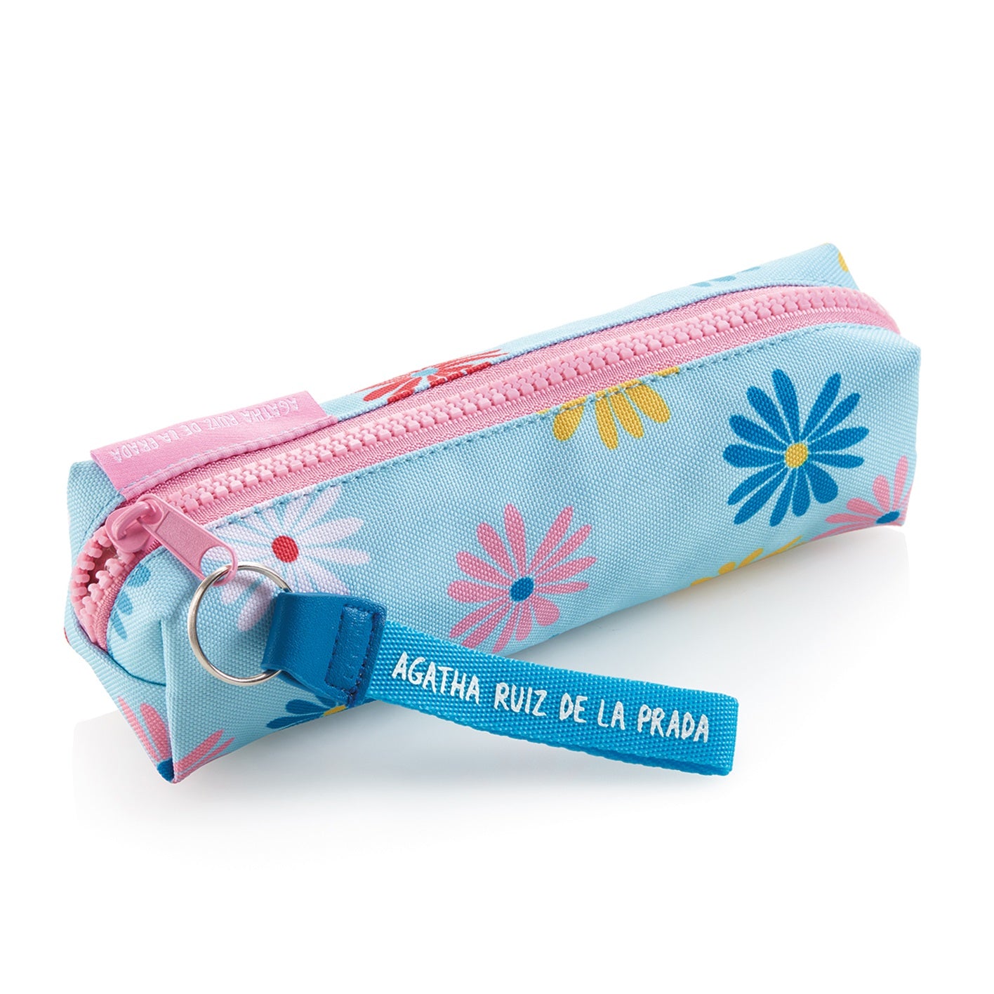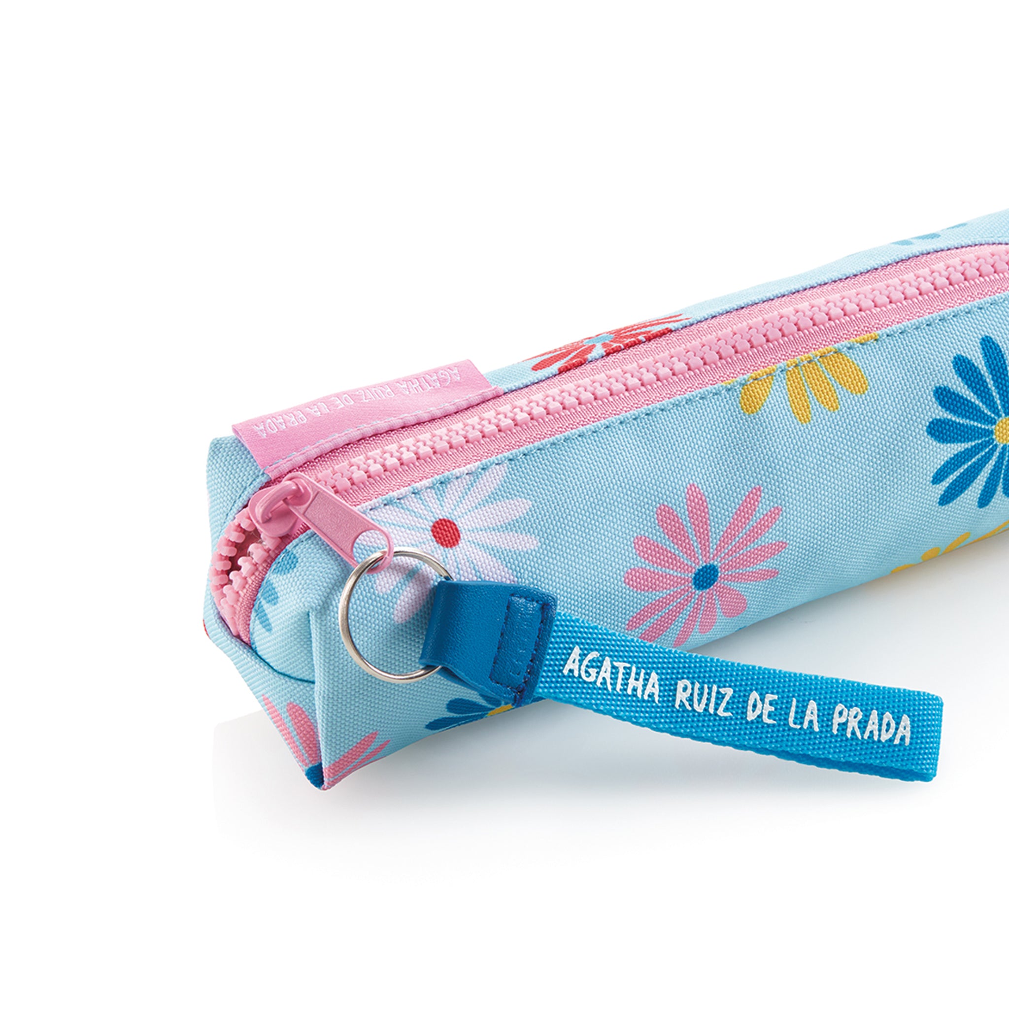 Röhrenförmiges Mäppchen von Miquelrius, bedruckt mit süßen Gänseblümchen, mit einem Hauptfach mit Reißverschluss. Es ist aus recycelten PET-Flaschen hergestellt. Er bietet Platz für das notwendige Schulzubehör. Perfekt für den Einsatz in einem Kindergarten oder einer Schule.