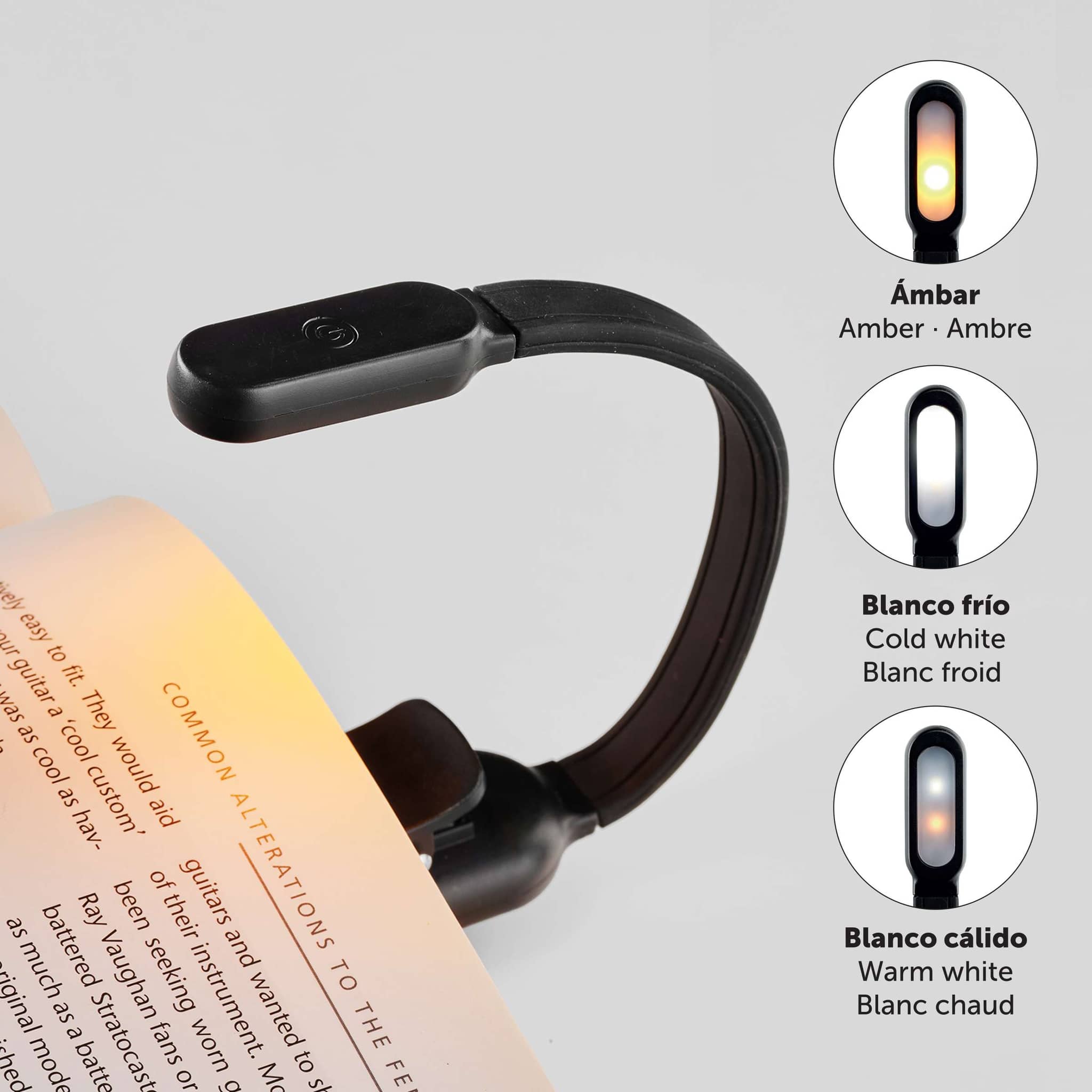 Der flexible Arm ermöglicht es Ihnen, das Licht genau dort zu platzieren, wo Sie es benötigen, und dank des praktischen Clips können Sie die Lampe an einem Buch, einem Notizbuch oder einem E-Book befestigen. Drei Lichtfarben – warm, kalt und gemischt – ermöglichen es Ihnen, die Beleuchtung ganz einfach an die Tageszeit und Ihre persönlichen Vorlieben anzupassen. Es ist das perfekte Gadget für Leseliebhaber, Schüler und Studenten und eine großartige Idee für ein praktisches Geschenk.