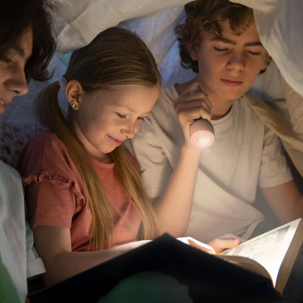 Die weiche Silikonhülle (BPA-frei) macht die Taschenlampe angenehm griffig und absolut sicher, selbst für die kleinsten Nutzer. Dank der intuitiven Touch-Steuerung kann das Kind die Helligkeit selbst regulieren und das Licht mit einer einfachen Berührung an seine Bedürfnisse anpassen. Das sanfte Licht blendet nicht, beleuchtet aber effektiv die Umgebung.