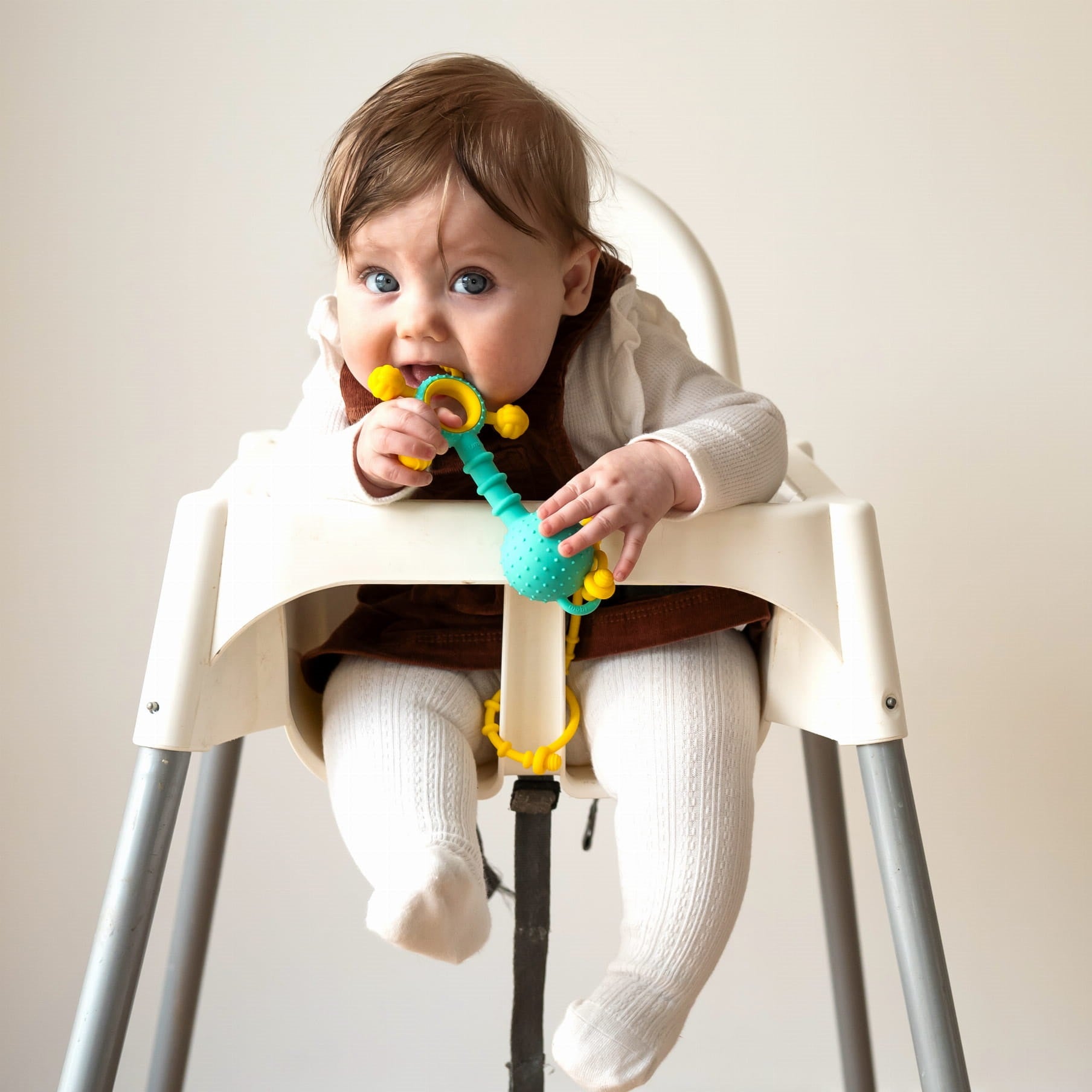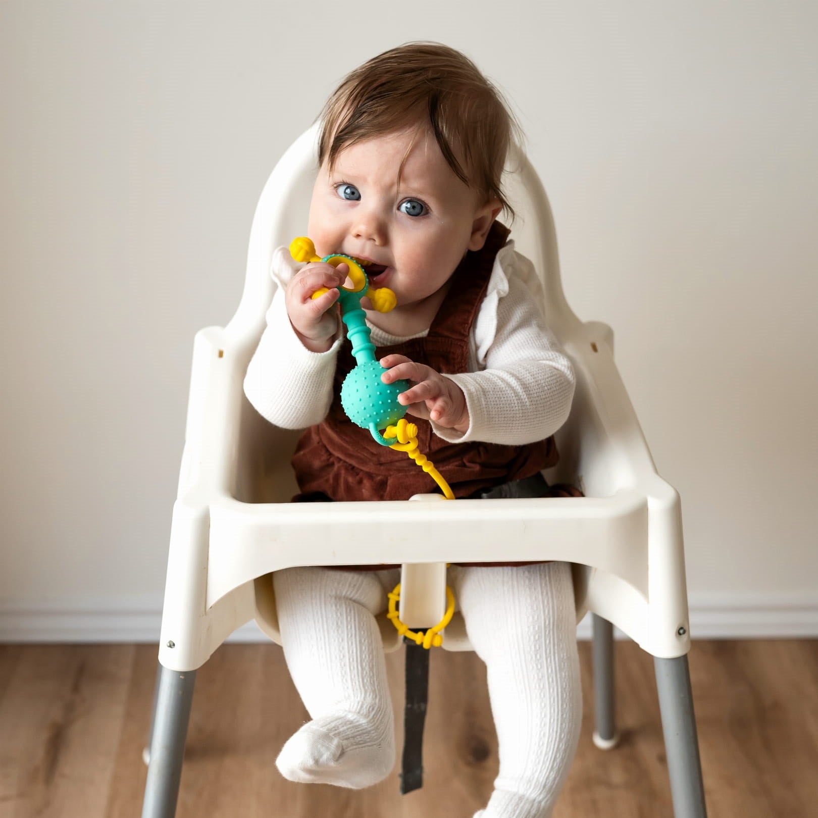 - Drei Silikonbänder zum Sichern von Spielzeug und Babyartikeln.