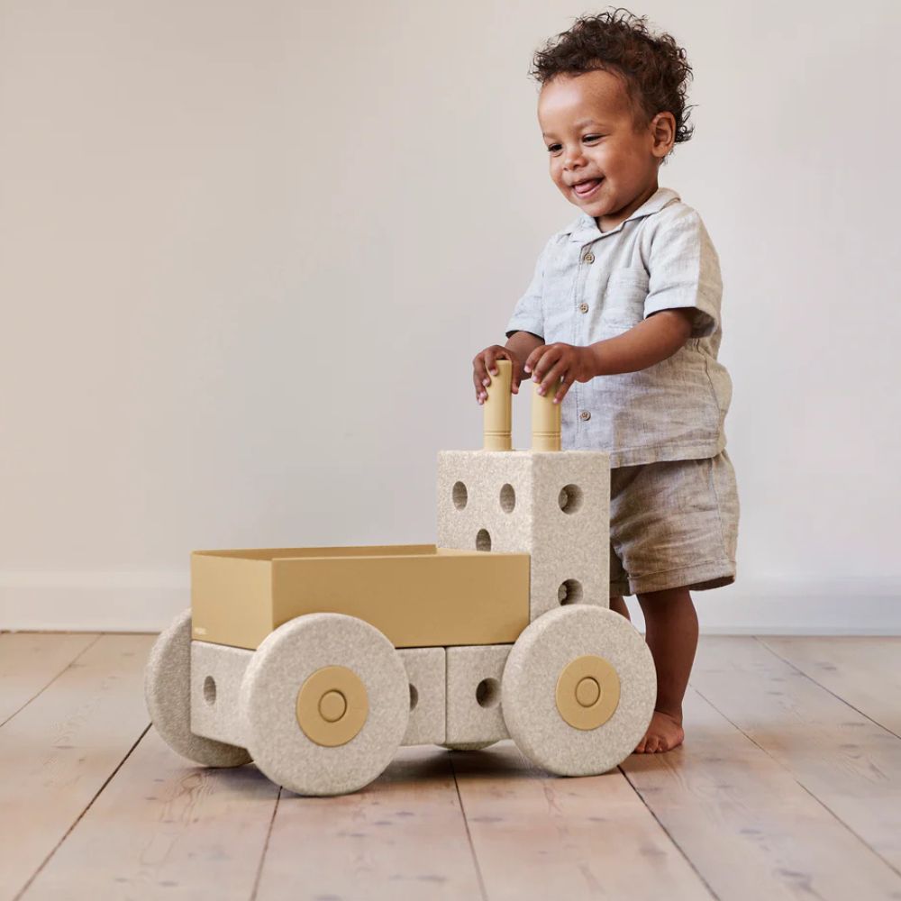 Die neue Ergänzung des MODU-Sets - der 3-in-1 Pusher - ist nicht nur ein Helfer zur Unterstützung der ersten Gehversuche des Babys, sondern auch ein spannendes und fantasievolles Spielzeug, das als Kinderwagen , Schubkarre oder Hocker verwendet werden kann. Dank der leichten Konstruktion und der großen Räder lässt sich der Pusher von den Kleinen leicht schieben. In der geräumigen Box finden die Lieblingsspielzeuge Ihres Kindes Platz - Bauklötze, Kuscheltiere, Puppen oder Autos. Wenn Ihr Kind größer wird, können Sie den Pusher mit weiteren Blöcken erweitern oder ihn als eines der Teile Ihrer Sammlung zum gemeinsamen Bauen und Spielen verwenden.