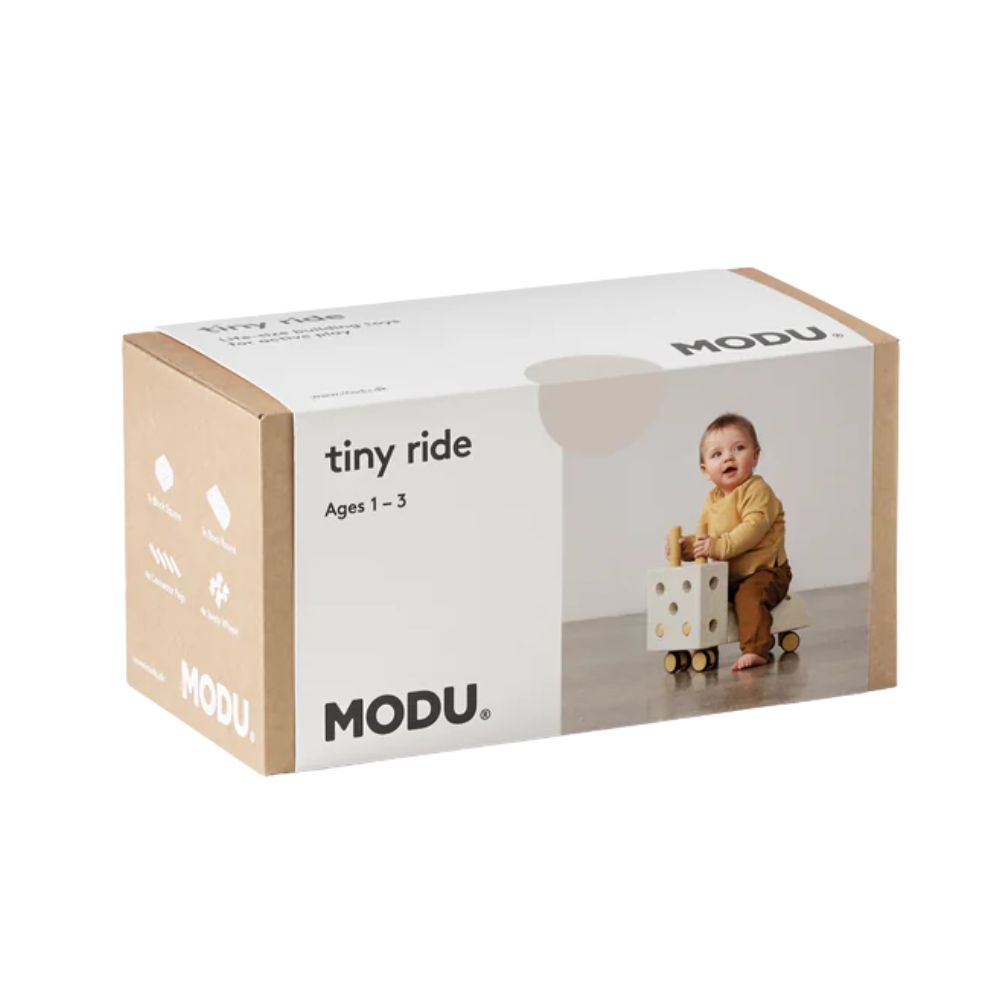 Die Elemente des Sets MODU – Tiny Ride – bieten Ihrem Kind jede Menge Spaß und Bewegung, fördern seine Motorik und regen seine Fantasie an. Dank seiner leichten Konstruktion und den um 360° drehbaren Rädern ist Tiny Ride sehr wendig und für kleine Fahrer leicht zu steuern. Die vollständige Bewegungsfreiheit in alle Richtungen beansprucht den gesamten Körper des Kindes für die Steuerung des Fahrzeugs und fördert so sein Gleichgewichtsgefühl, seine Kraft und seine Koordination. Es ist eine hervorragende Einführung in das Laufradfahren.