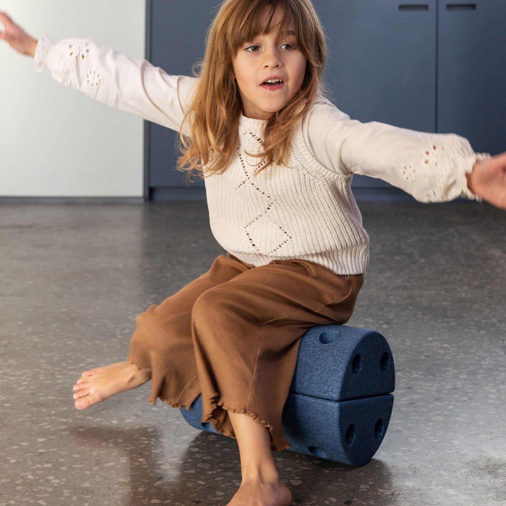 Sitzen, schaukeln, balancieren! Ein vielseitiger Hocker für Kinder, der viele Möglichkeiten zum Spielen bietet. Er ist das perfekte Spielzeug für jedes Kind, egal welchen Alters.