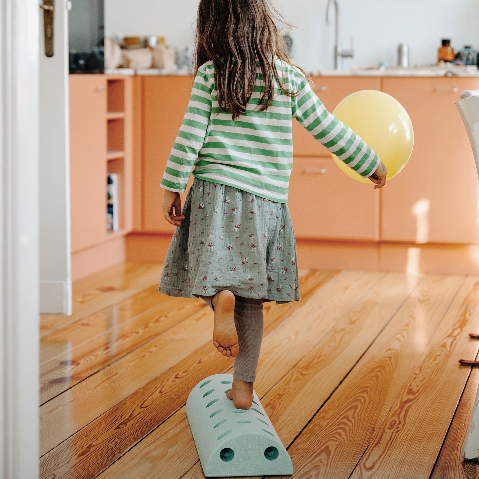 Sitzen, schaukeln, balancieren! Ein vielseitiger Hocker für Kinder, der viele Möglichkeiten zum Spielen bietet. Er ist das perfekte Spielzeug für jedes Kind, egal welchen Alters.