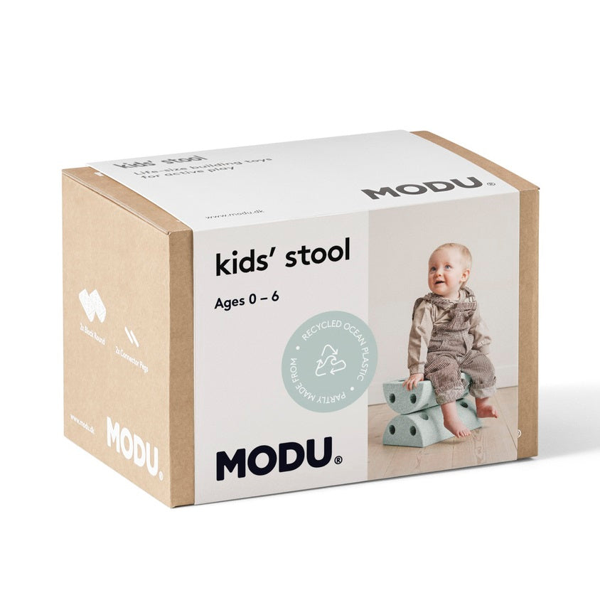MODU - Kids Stool - gibt Ihnen die Möglichkeit, vom Spielen auf dem Bauch für ein Kleinkind bis zum Üben des Gleichgewichts für ein größeres Kind oder zum Schaukeln von einer Seite zur anderen. Sie können den Hocker mit anderen MODU-Blöcken kombinieren, um eine "Seilüberquerung" oder einen lustigen Hindernisparcours zu schaffen oder alles andere, was Ihre Fantasie hergibt!