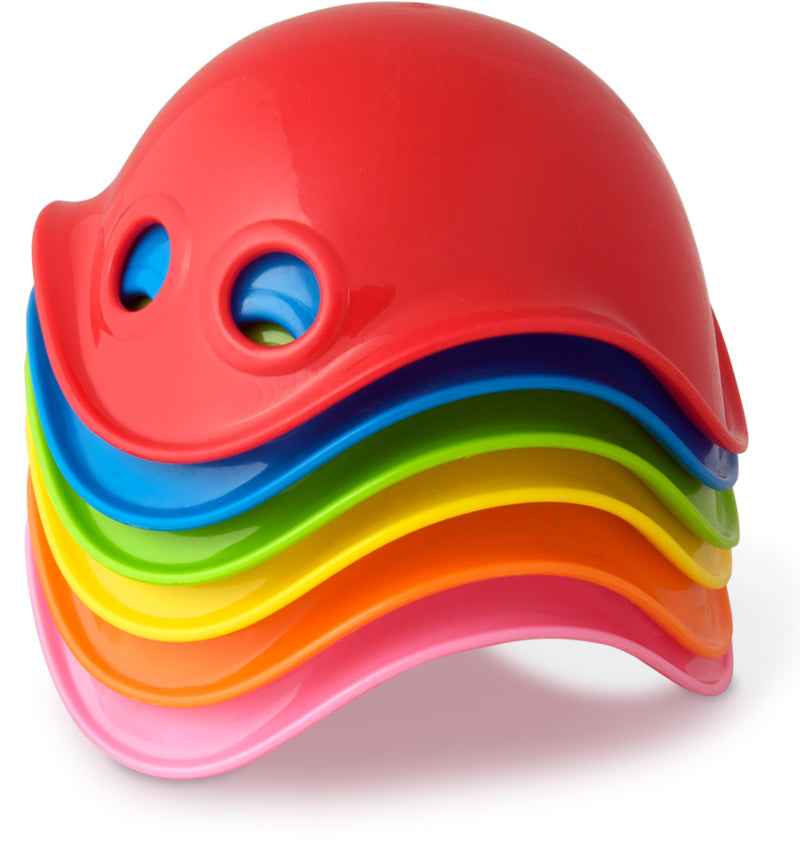 Das Set besteht aus 6 Mini-Bilibo-Muscheln in gelb, grün, rot, blau, rosa und orange mit einer Größe von 12x12x7 cm.